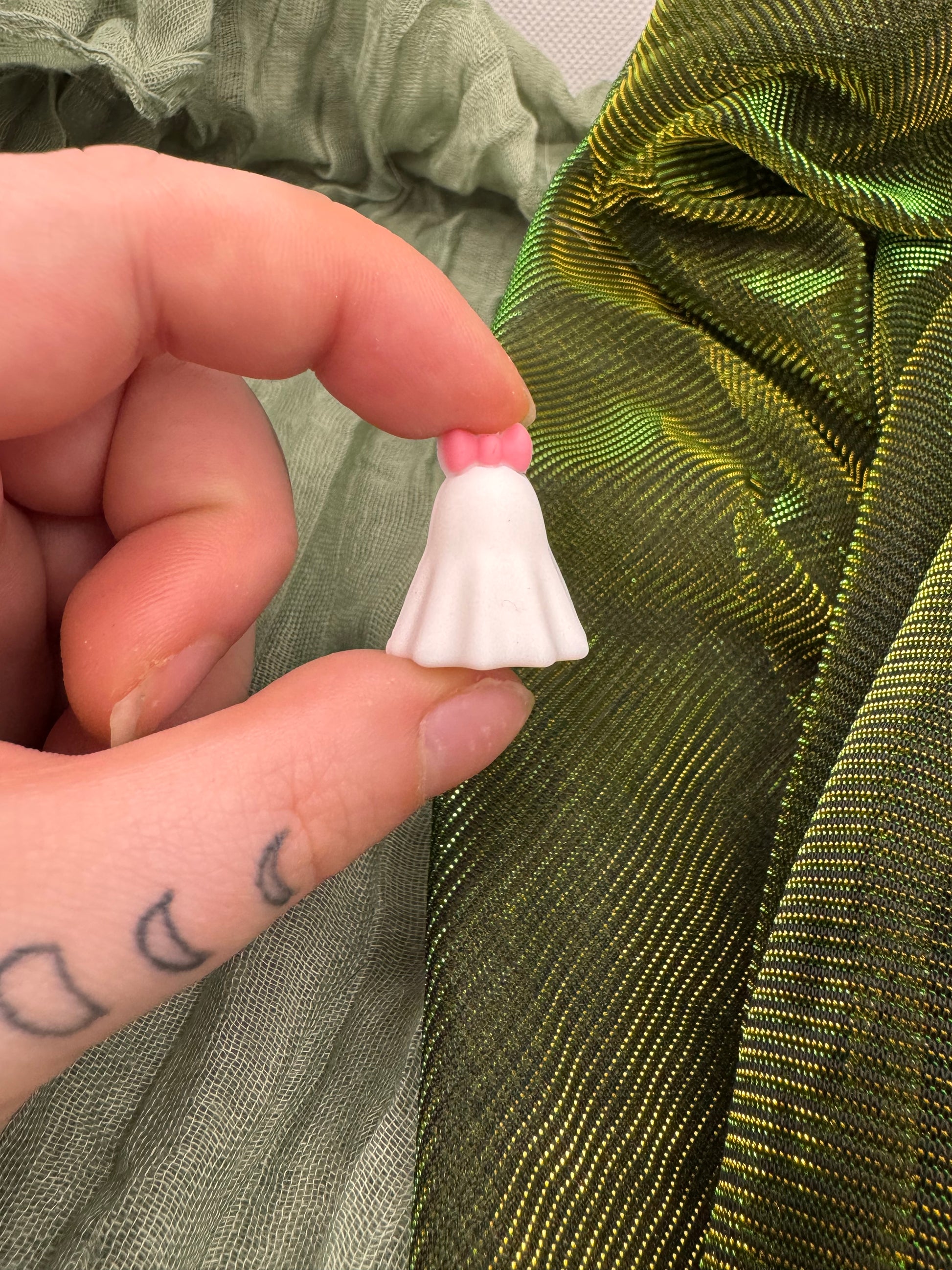 Customise your own beaded crochet hook! The topper is this cute and spooky 3D ghost which comes as either a ghost holding a pumpkin jackolantern or as a cutesy ghost with a pink bow, and you can totally customise the other elements: hook size (this topper is recommended for smaller hook sizes) and bead colours (up to 3 per hook)!