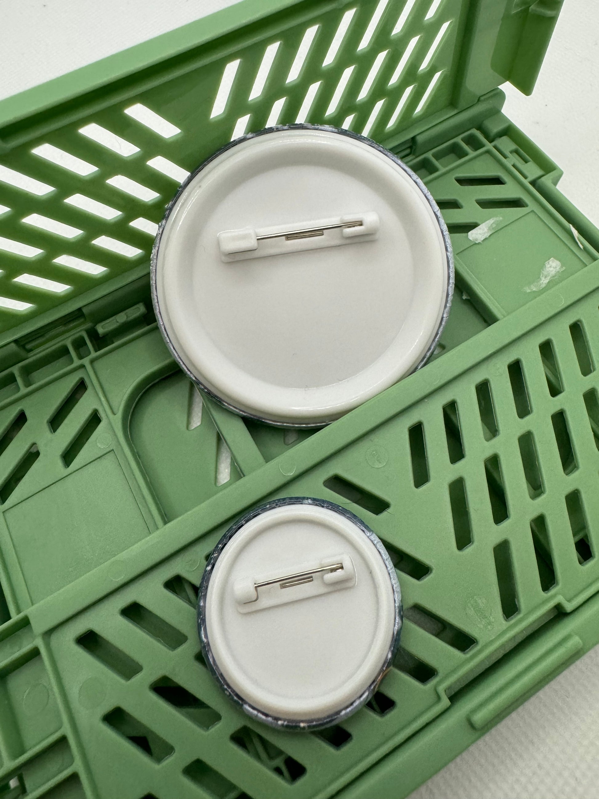 It is made from a metal front piece and plastic badge back with a metal pin for securing to your bag or shirt etc! The design is printed at home by me, Harper, and pressed onto the badge with my badge machine! The artwork is original to Harper Crochets, and is drawn on my iPad!