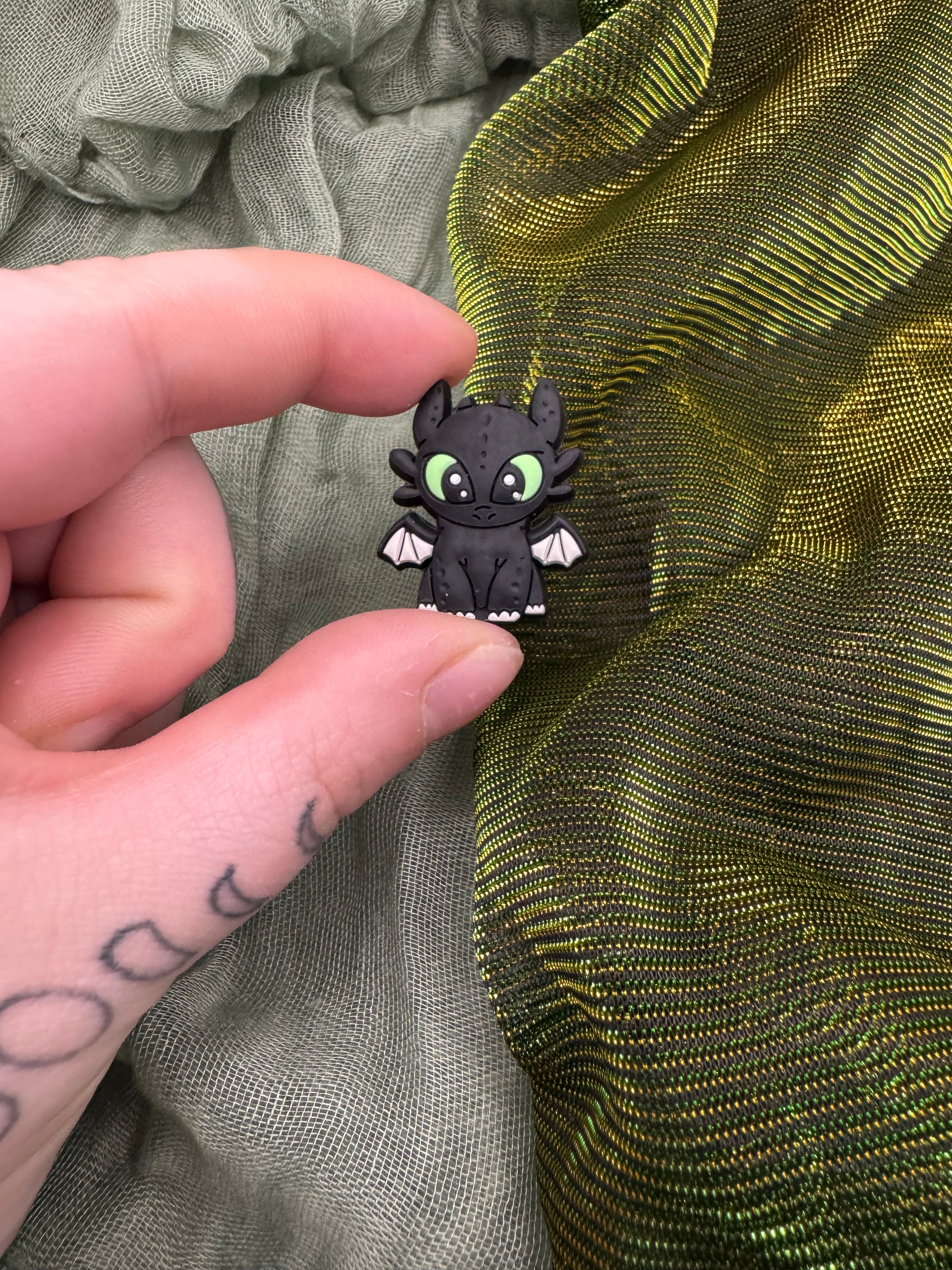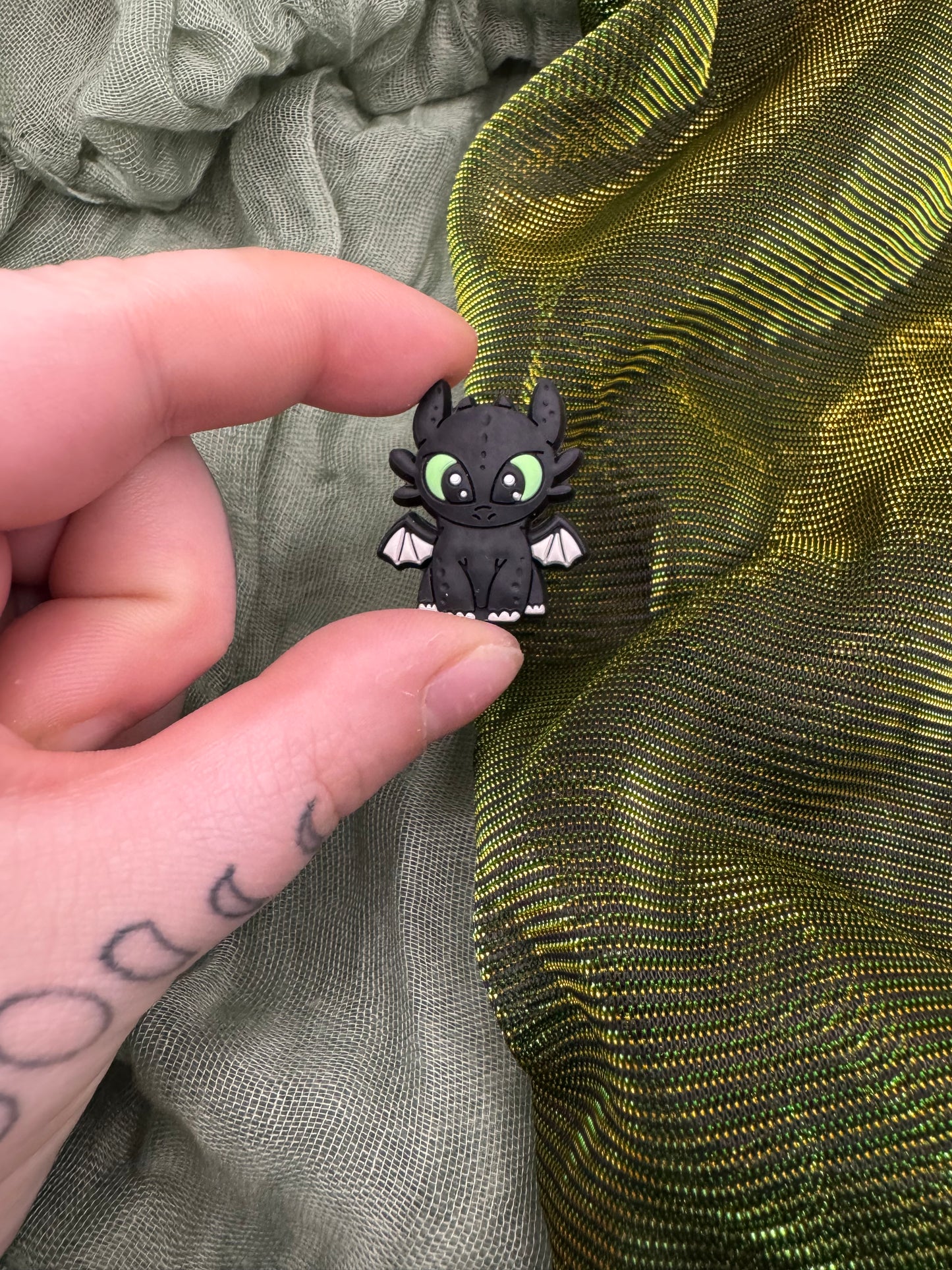 Customise your own beaded crochet hook! The topper is this double sided cartoon black fury dragon with green eyes, and you can totally customise the other elements: hook size, and bead colours (up to 3 per hook)!