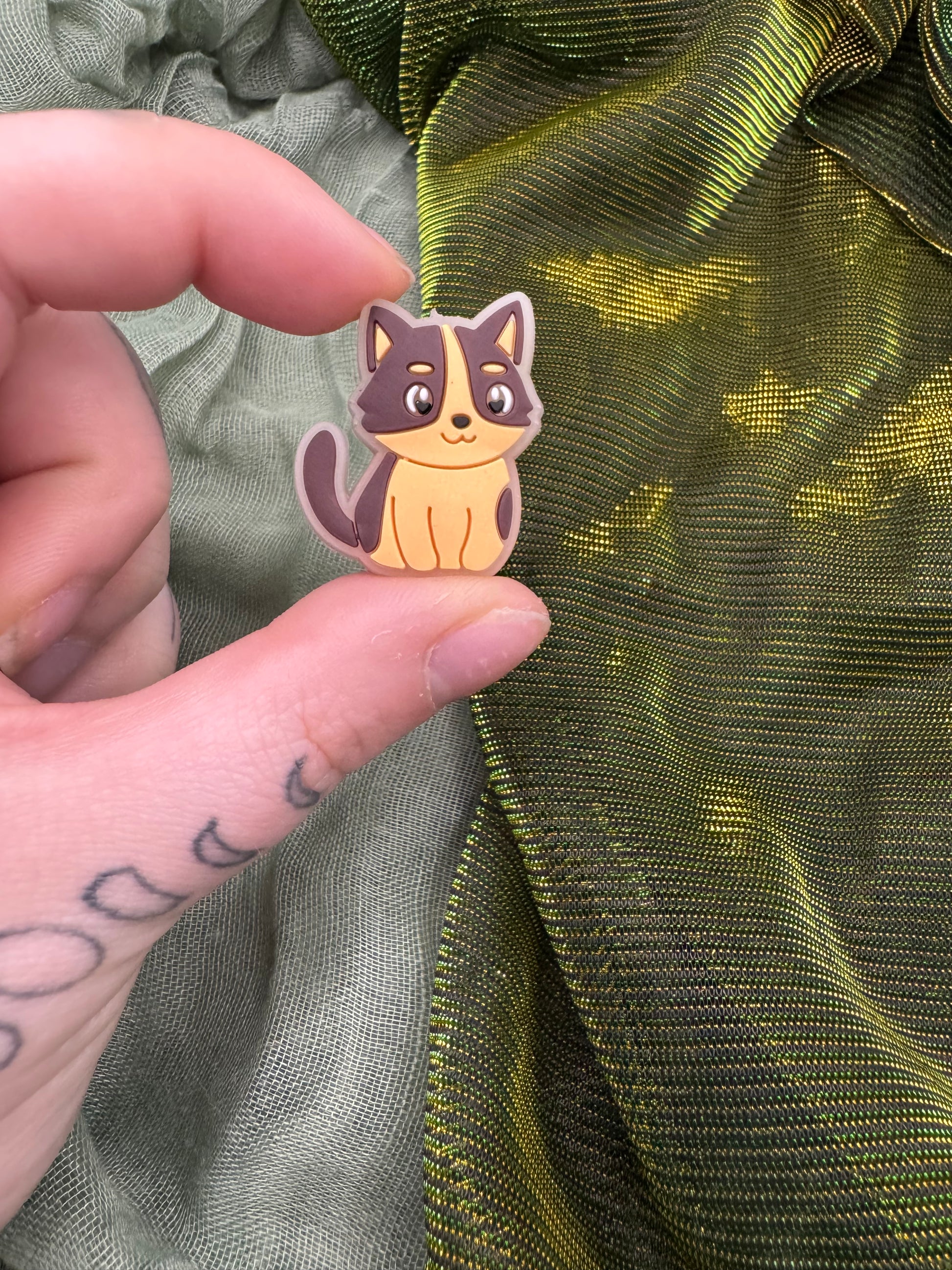 Customise your own beaded crochet hook! The topper is this cute double sided glow in the dark brown with a beige belly cat, and you can totally customise the other elements: hook size and bead colours (up to 3 per hook)!