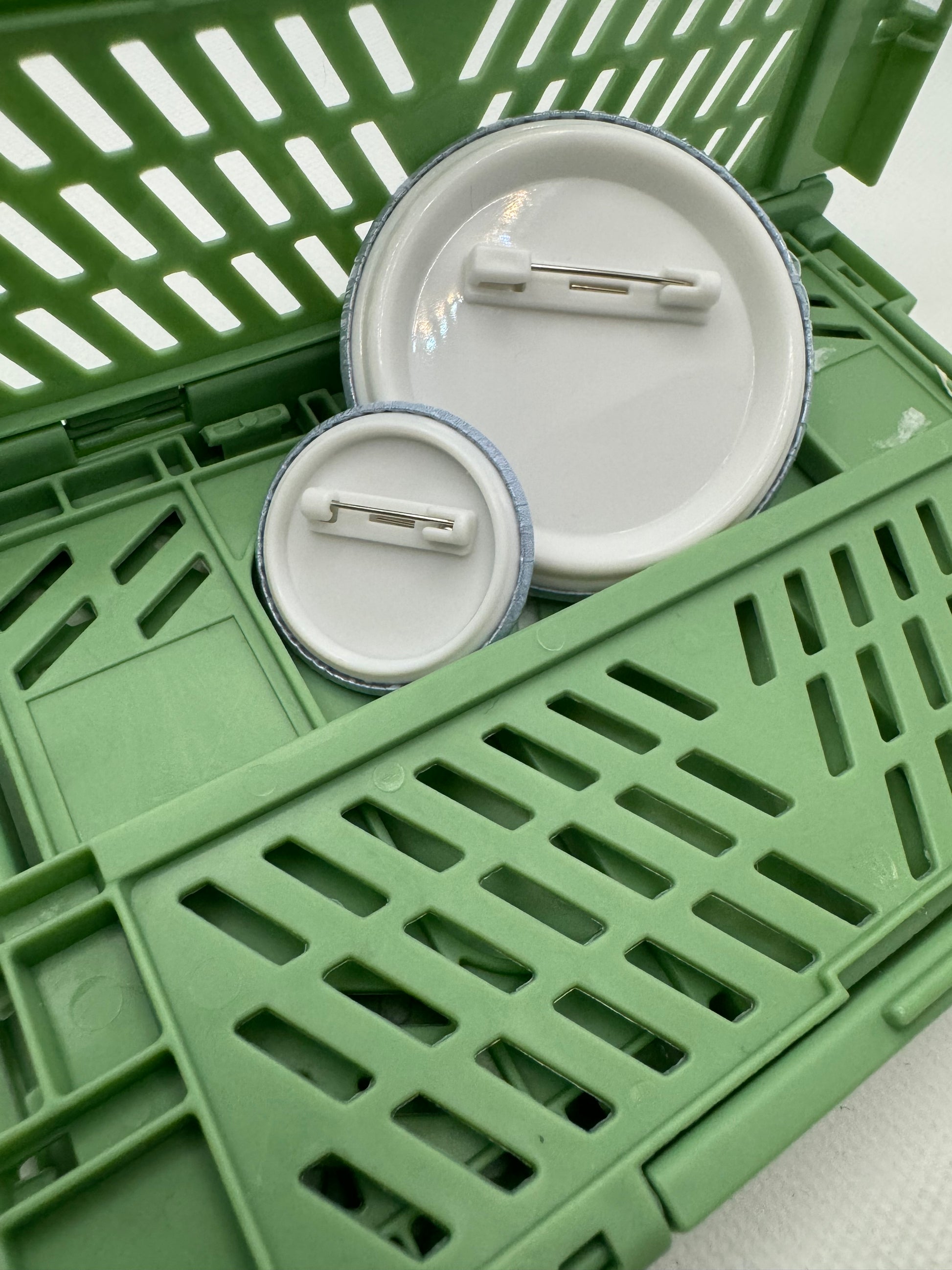 It is made from a metal front piece and plastic badge back with a metal pin for securing to your bag or shirt etc! The design is printed at home by me, Harper, and pressed onto the badge with my badge machine! The artwork is original to Harper Crochets, and is drawn on my iPad!