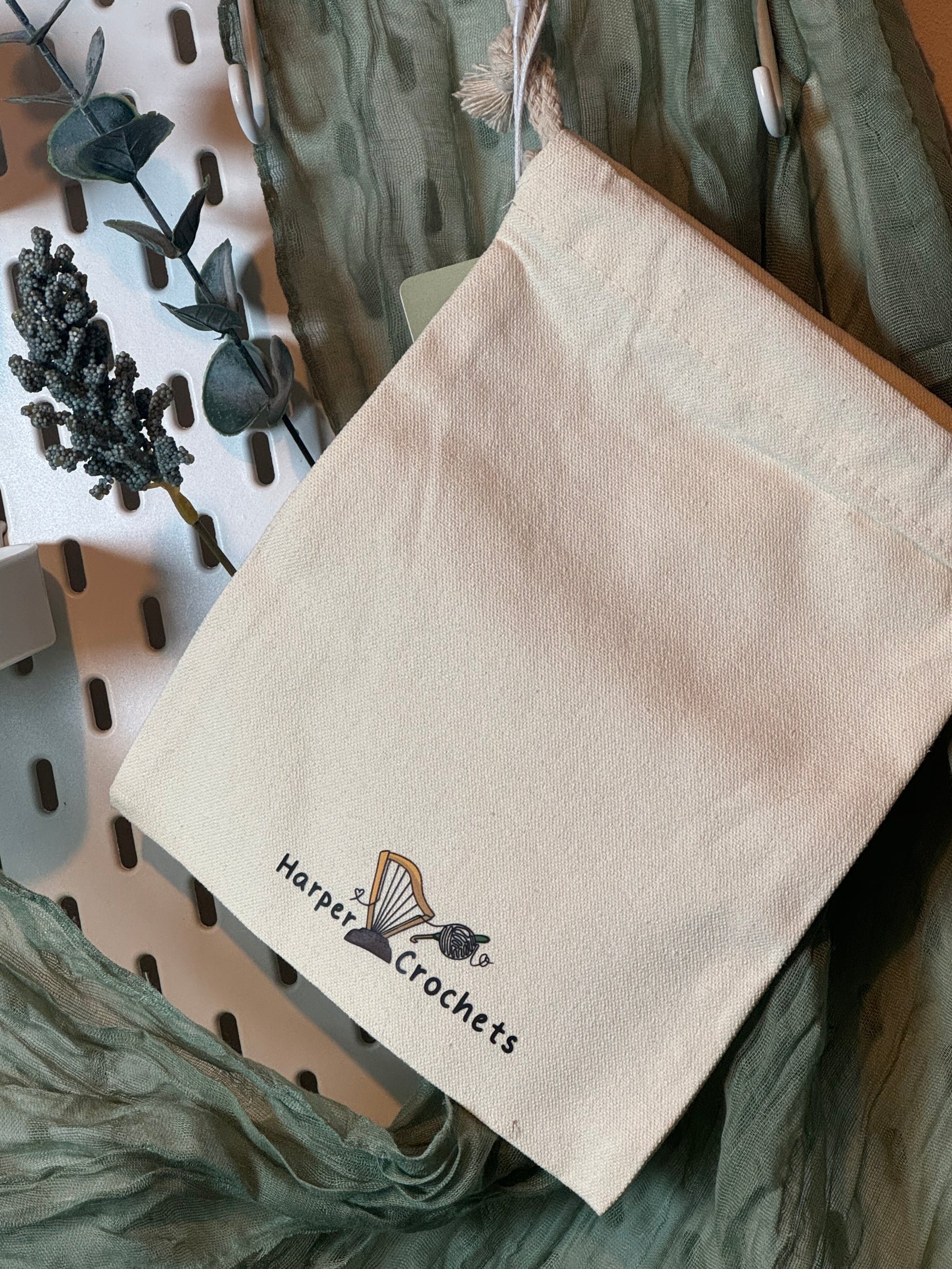 The design is drawn by me (Harper) on my iPad then sent to be turned into UVDTF transfers by a manufacturer. When I receive these transfers I then heat press them onto blank drawstring bags, and also press a transfer of my logo onto the back! These transfers are super durable and should last a lovely long time! A care card is included!