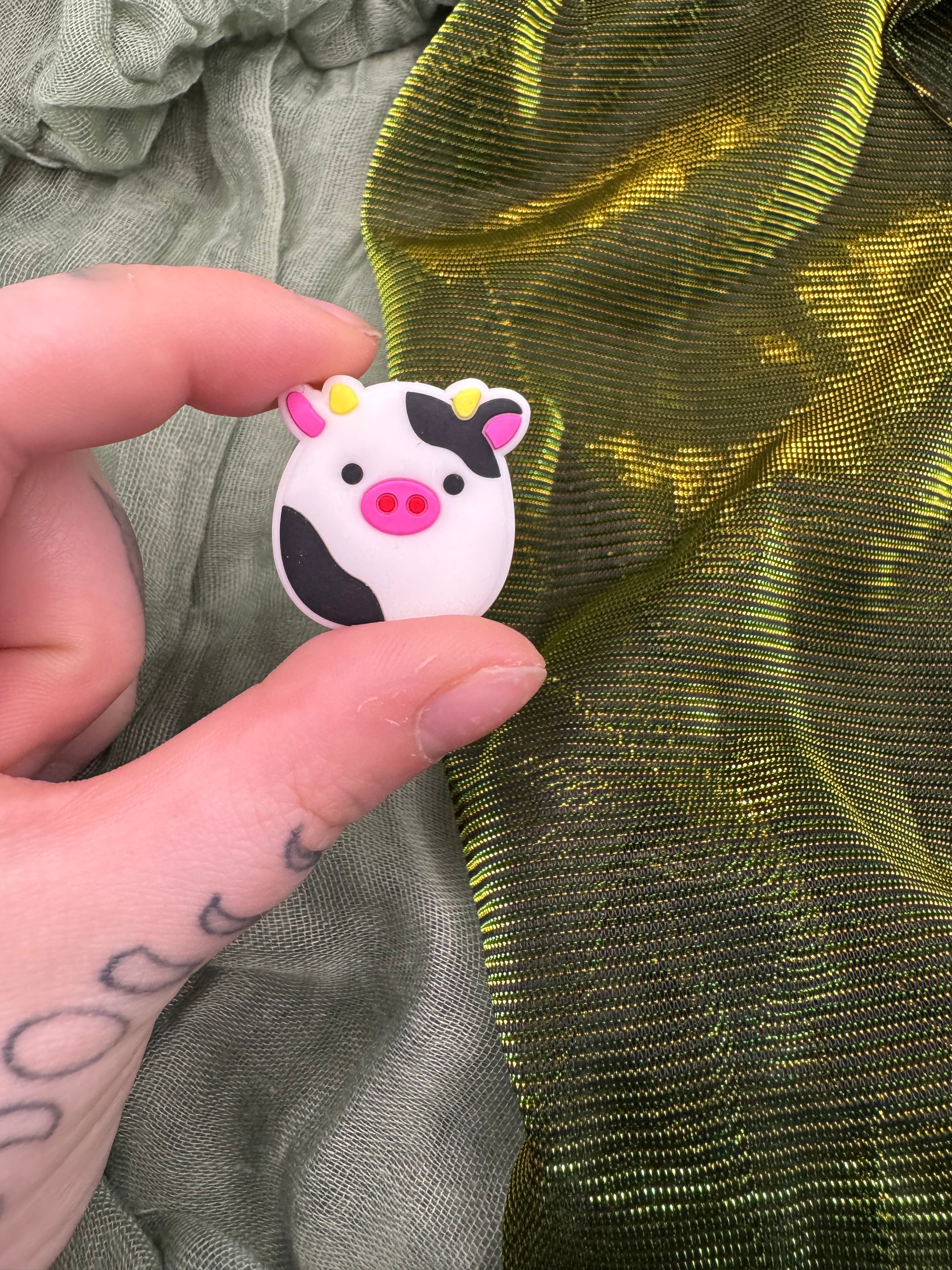 Customise your own beaded crochet hook! The topper is this cute double sided cow squish, and you can totally customise the other elements: hook size and bead colours (up to 3 per hook)!
