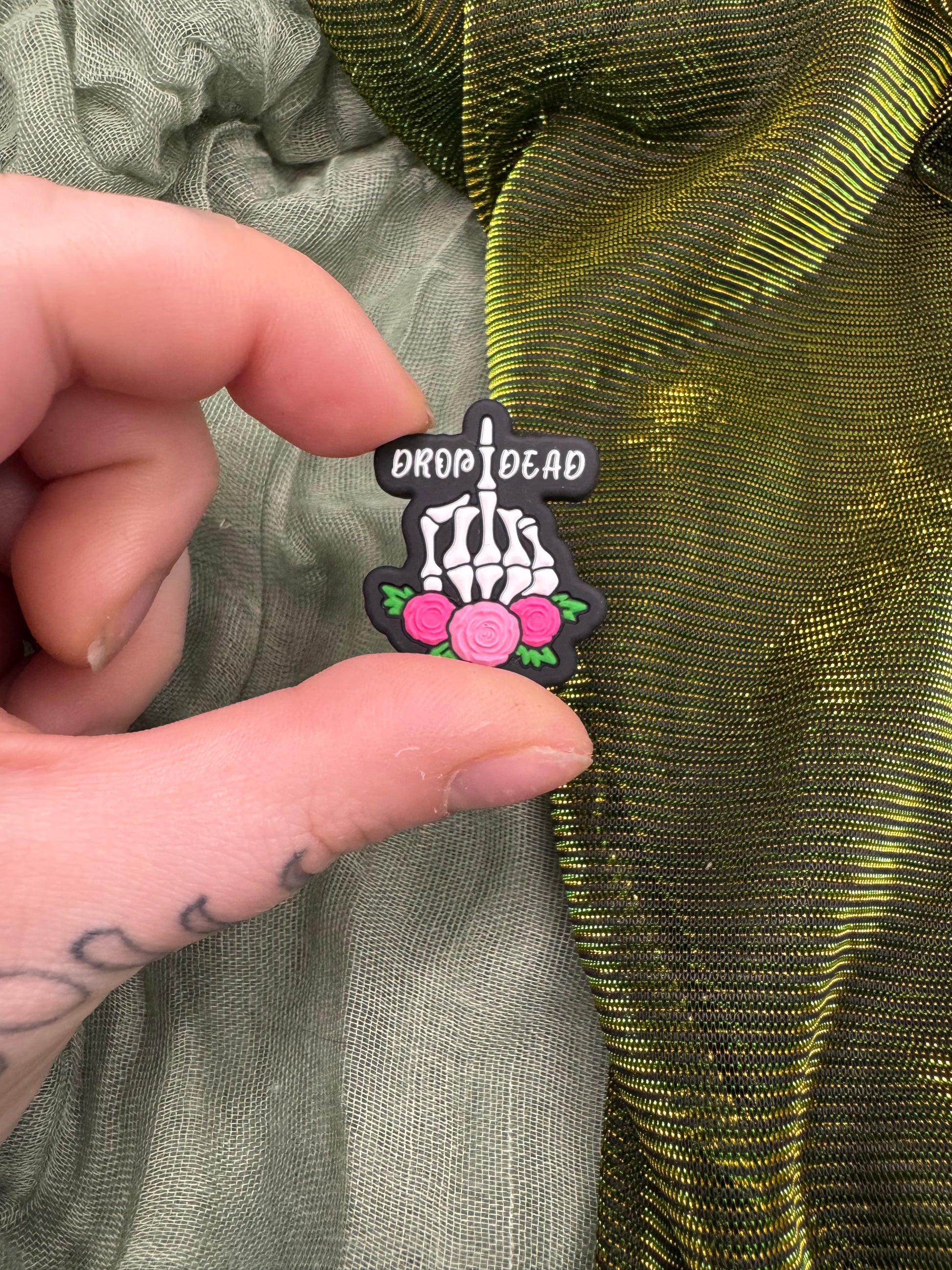 Customise your own beaded crochet hook! The topper is this funny and rude double sided middle skeleton finger with the words "drop dead" and flowers, and you can totally customise the other elements: hook size and bead colours (up to 3 per hook)!
