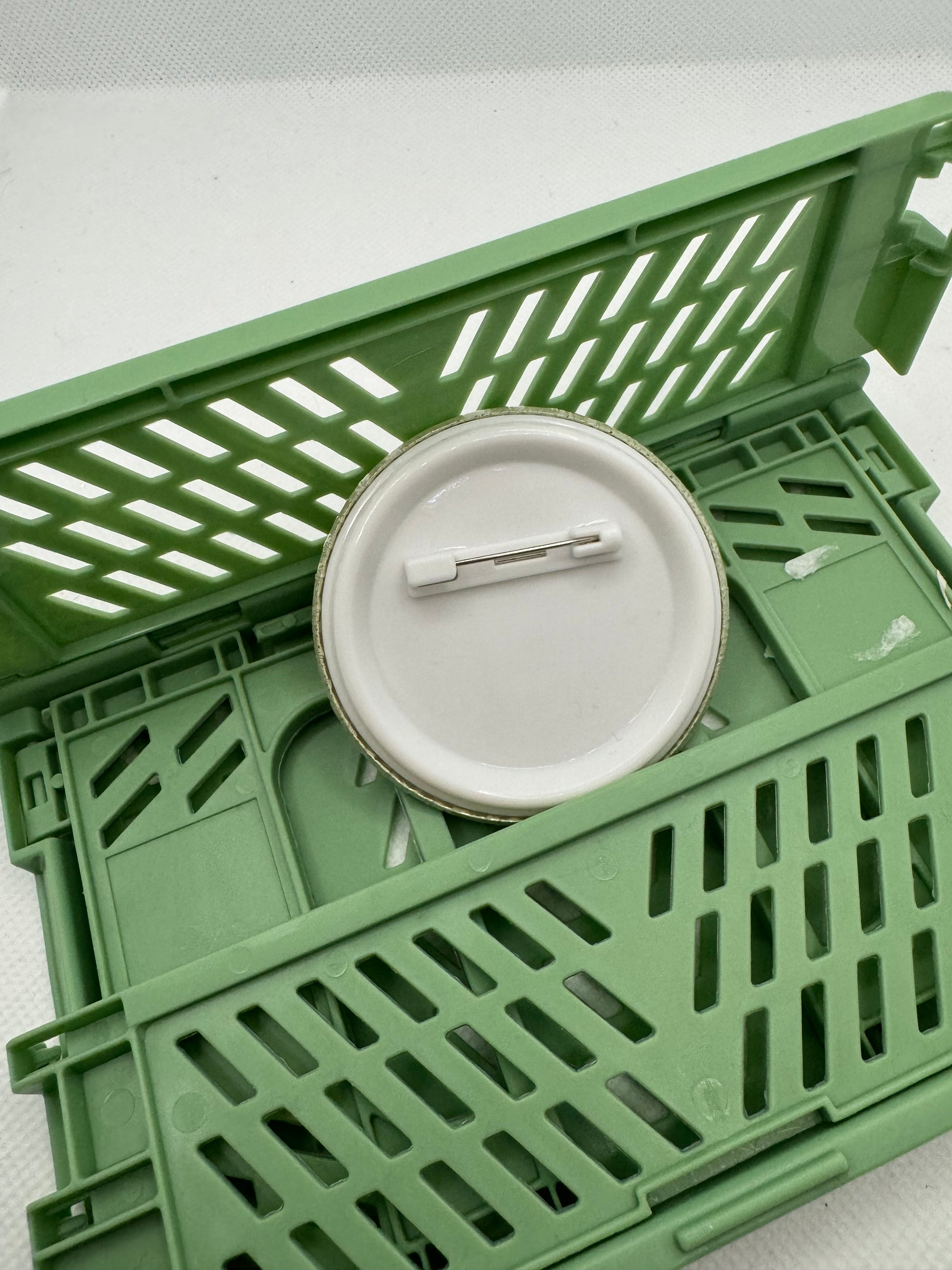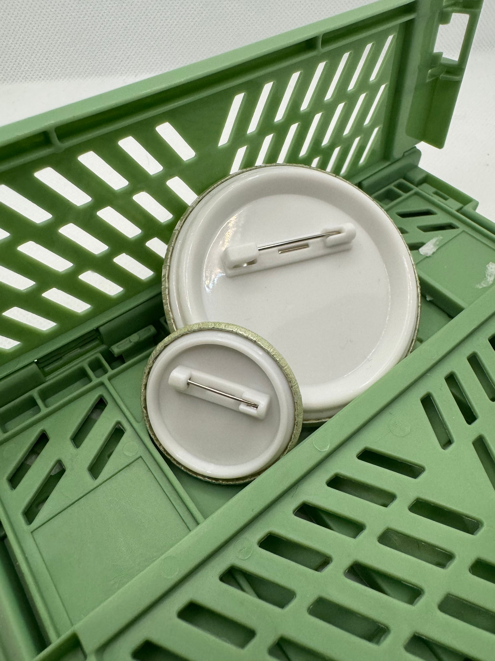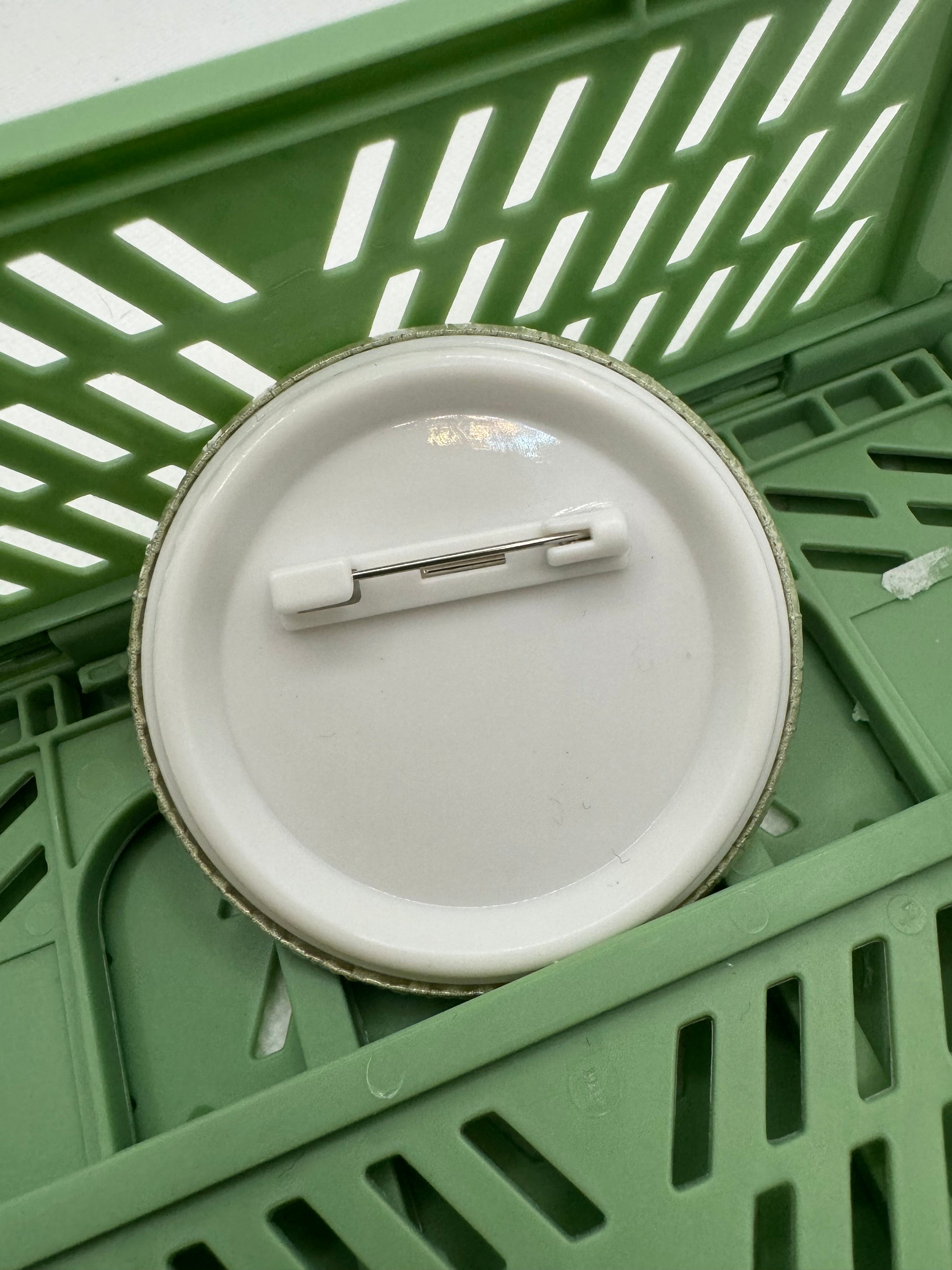 It is made from a metal front piece and plastic badge back with a metal pin for securing to your bag or shirt etc! The design is printed at home by me, Harper, and pressed onto the badge with my badge machine! The artwork is original to Harper Crochets, and is drawn on my iPad!