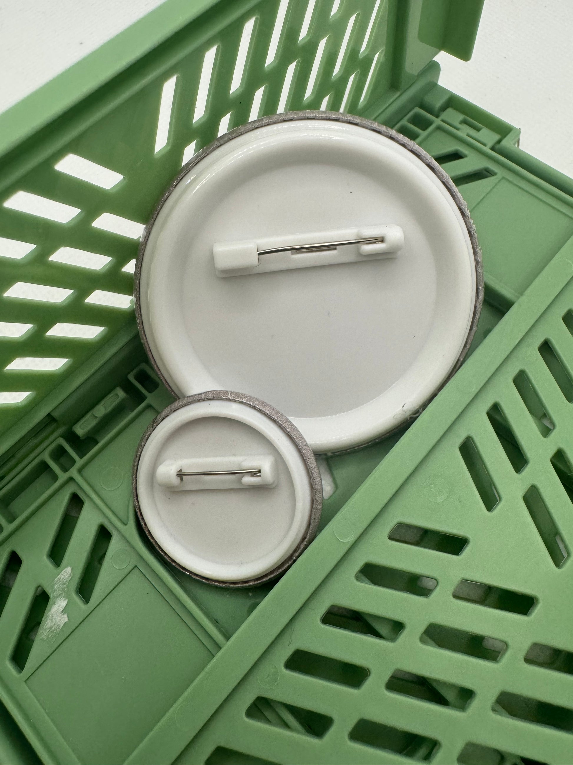 It is made from a metal front piece and plastic badge back with a metal pin for securing to your bag or shirt etc! The design is printed at home by me, Harper, and pressed onto the badge with my badge machine! The artwork is original to Harper Crochets, and is drawn on my iPad!