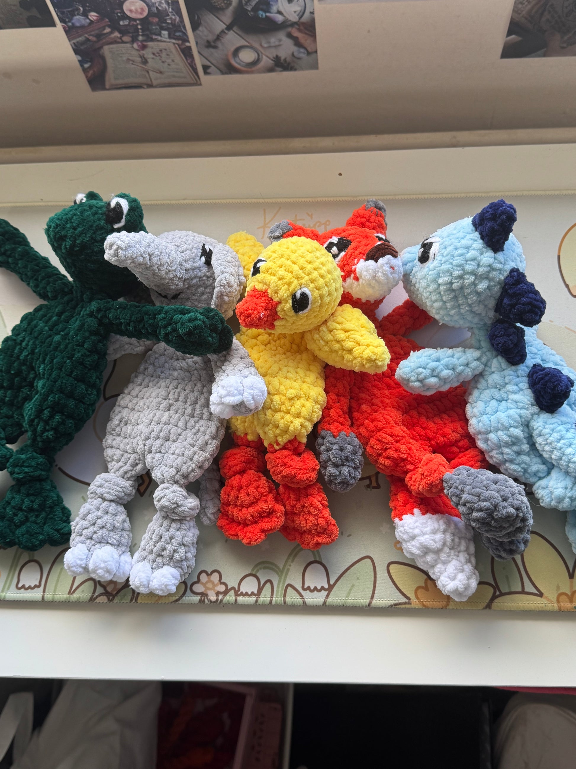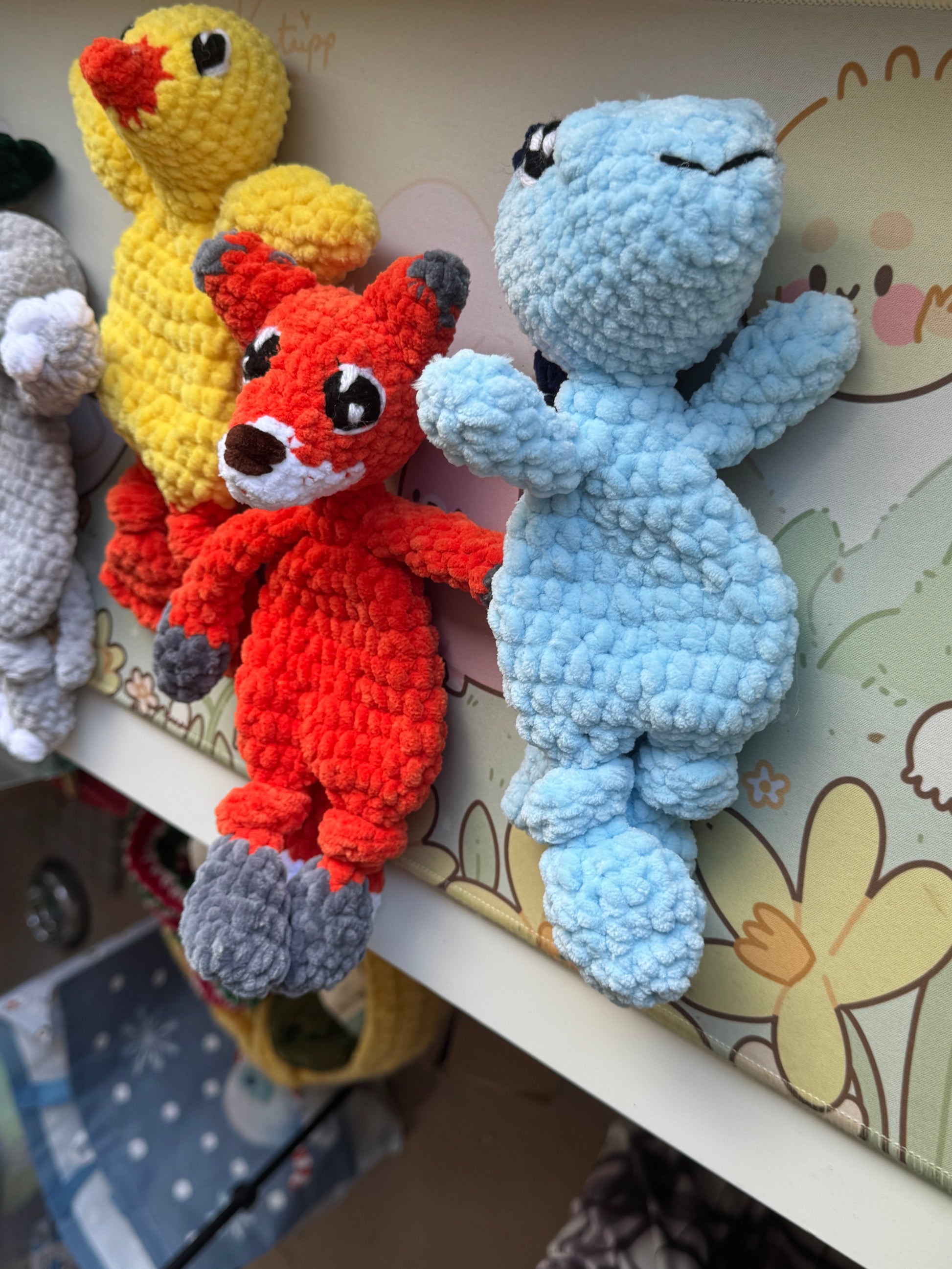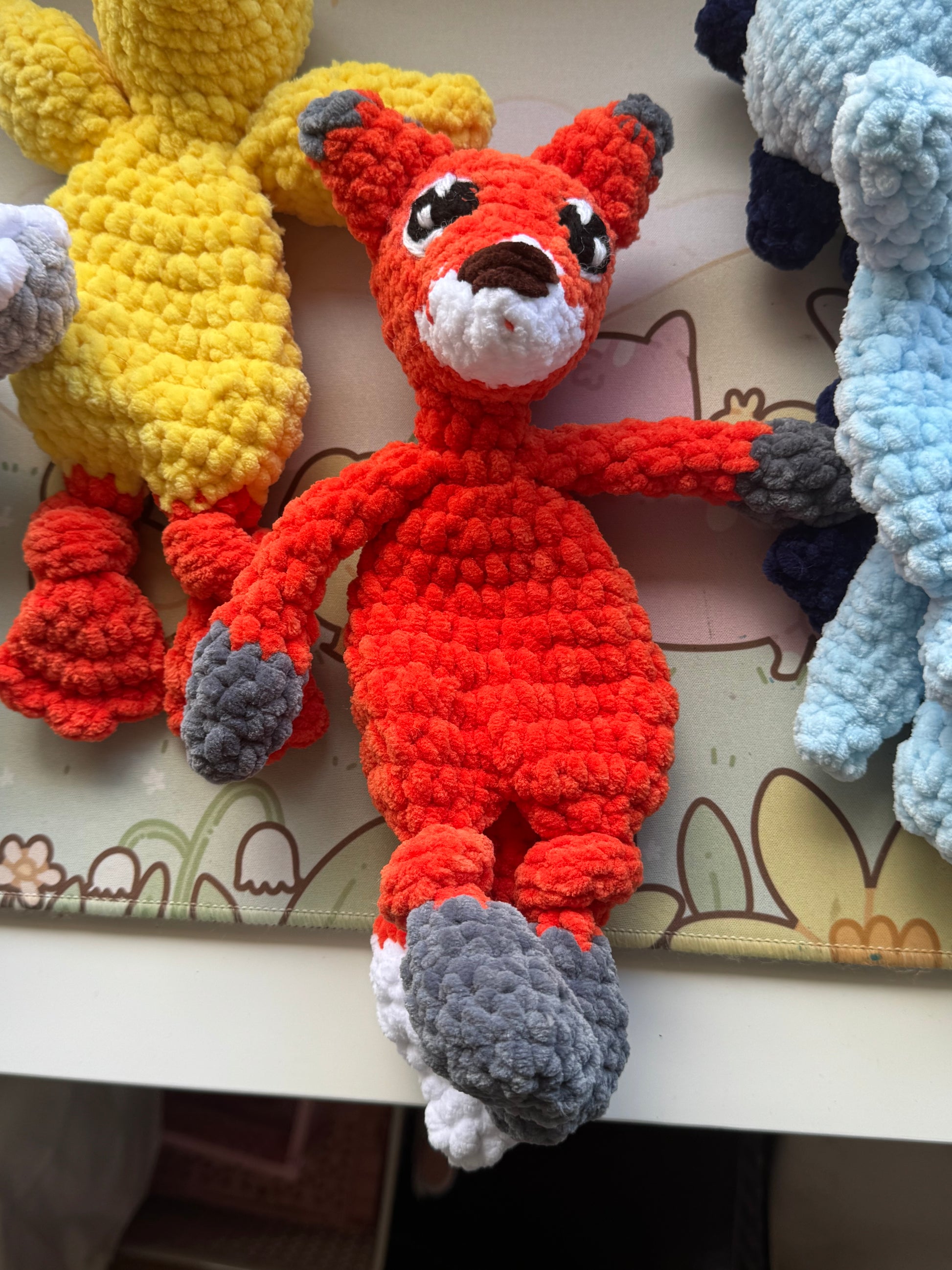 These snuggly Loveys need homes! Each one is a medium size and is the perfect size for cuddling and tucking under an arm! These are mostly unstuffed plushies, with only the head being stuffed, and the body staying loose and floppy due to not being stuffed! They are called "Loveys" or "snugglers" and are designed primarily for babies and small children who need something to snuggle/ love in the cot! However they are super cute and comforting for anyone of any age who wants a snuggly friend for bed or companionship!