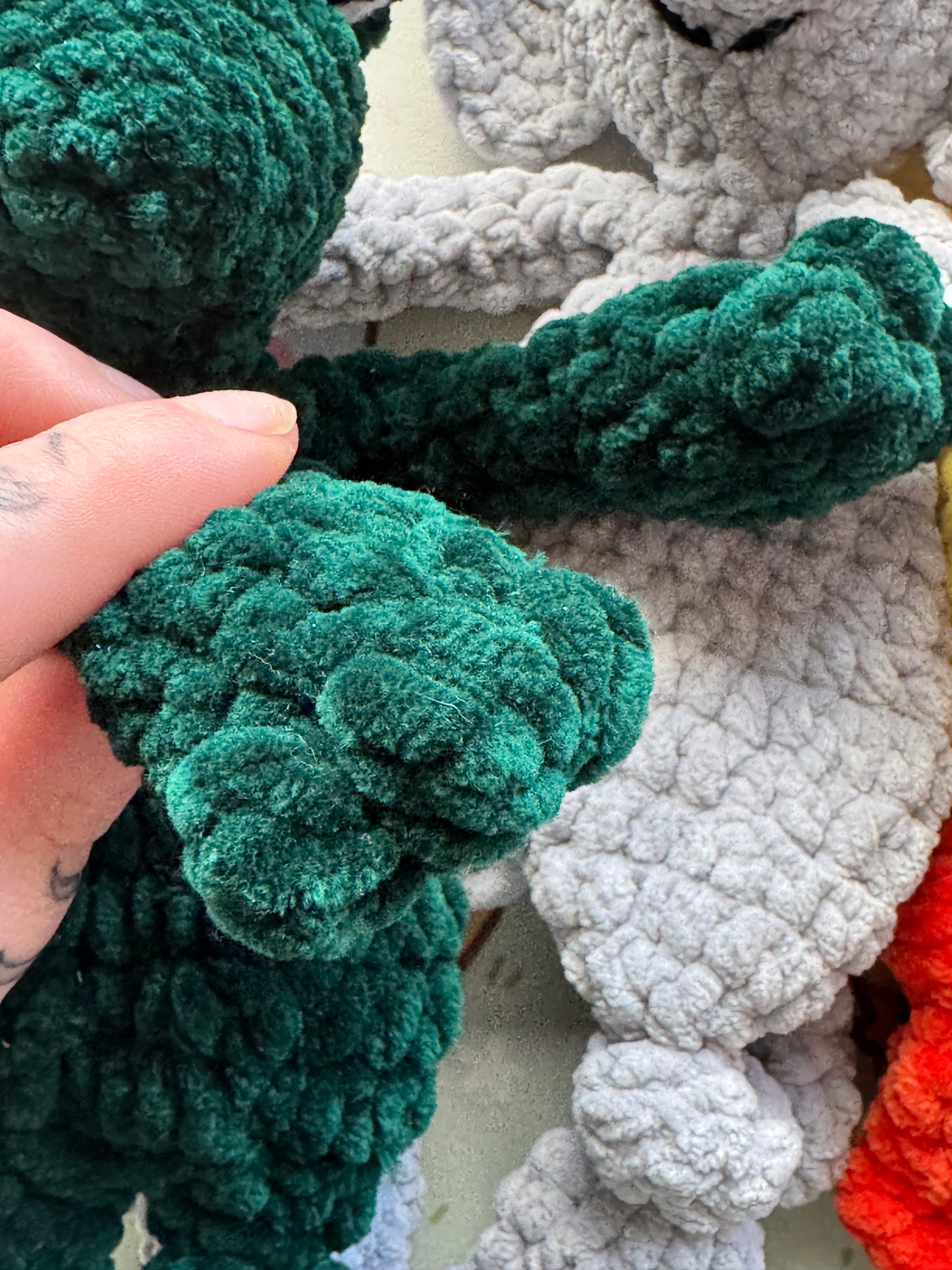 I like to stuff the lovey’s head relatively softly in comparison to my other plushies, but I still stuff firmly, so they last longer under cuddling conditions, since stuffing breaks down over time when cuddled a lot! They may seem firm at first but they've still got good squish-ability and will only get squishier!