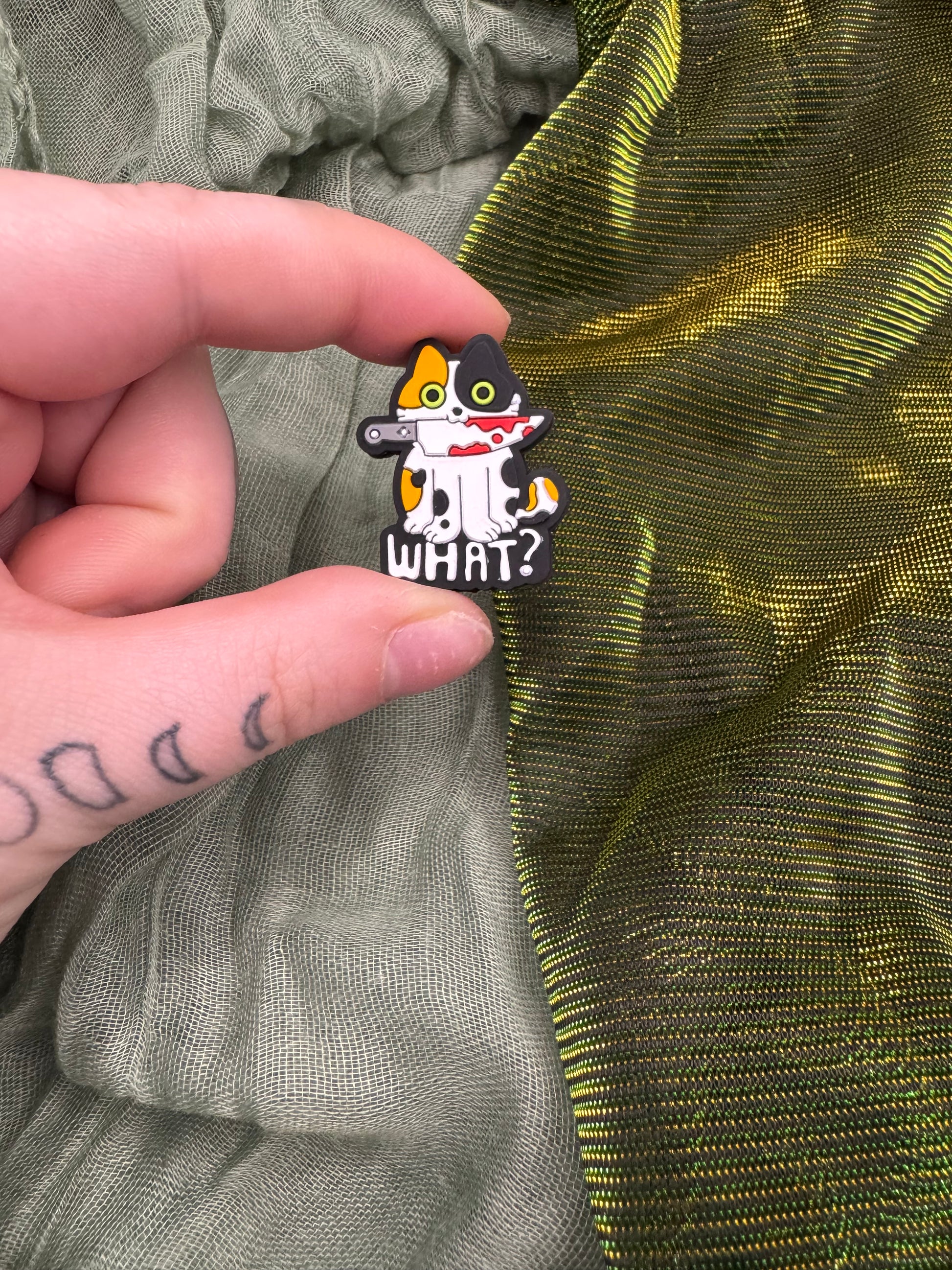 Customise your own beaded crochet hook! The topper is this cute double sided cat holding a bloody knife in its mouth, and you can totally customise the other elements: hook size and bead colours (up to 3 per hook)!