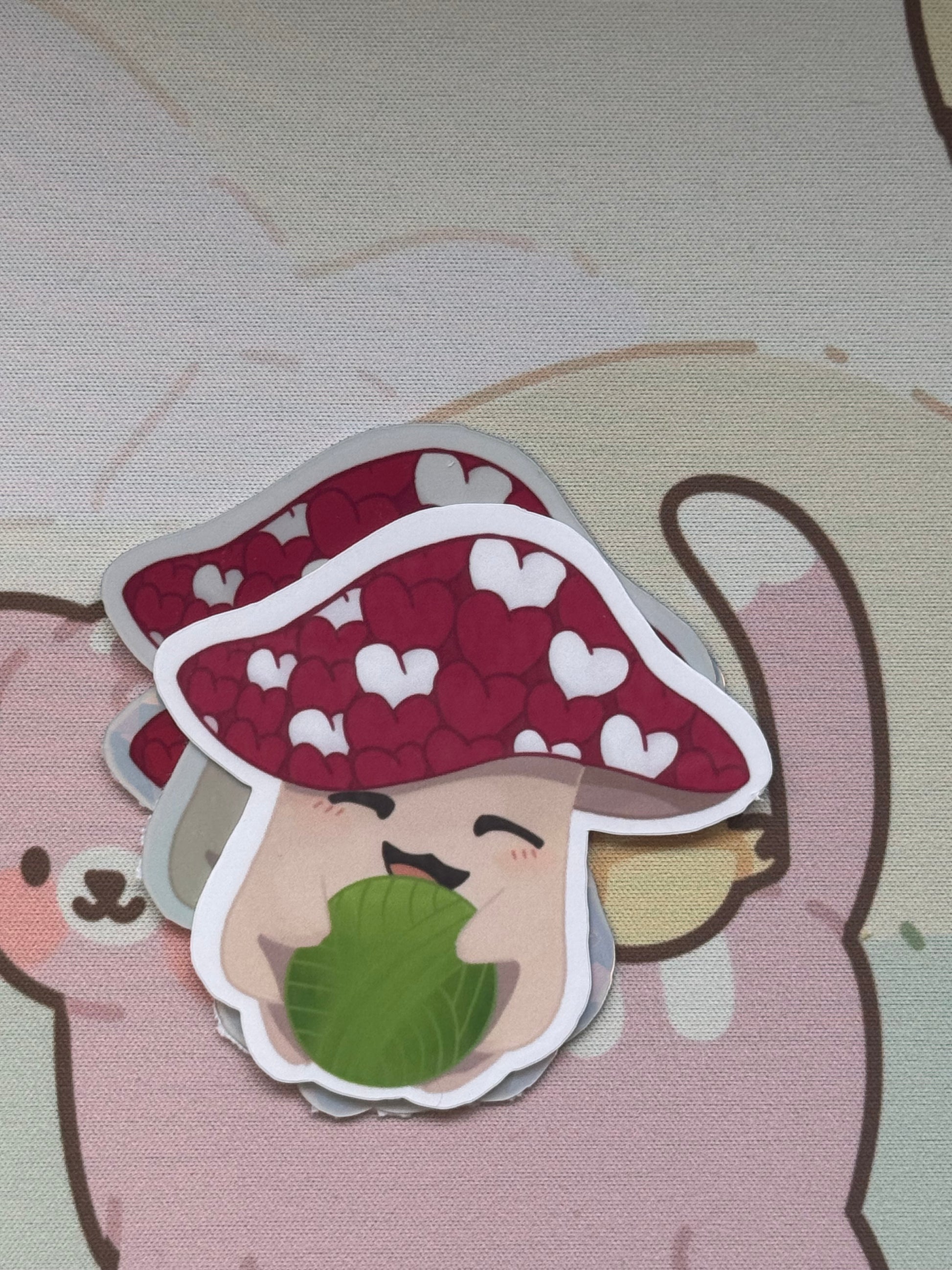 Mushroom holding yarn sticker