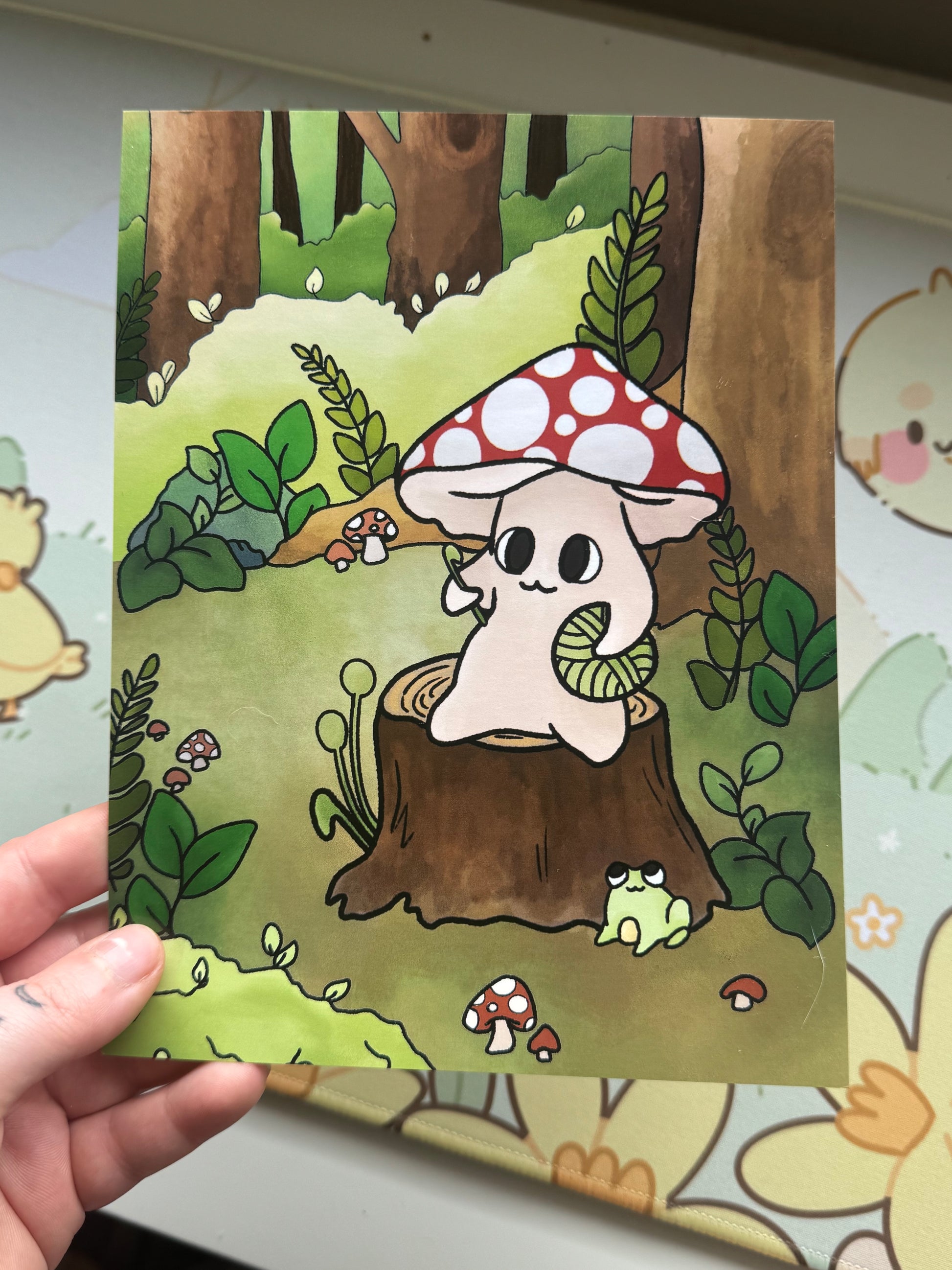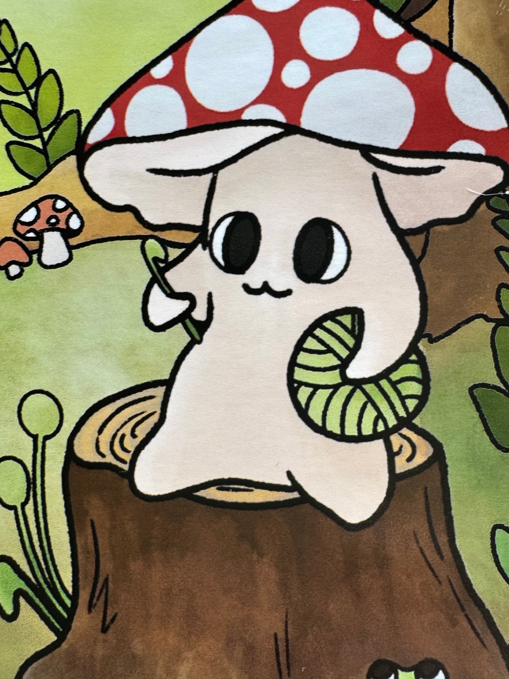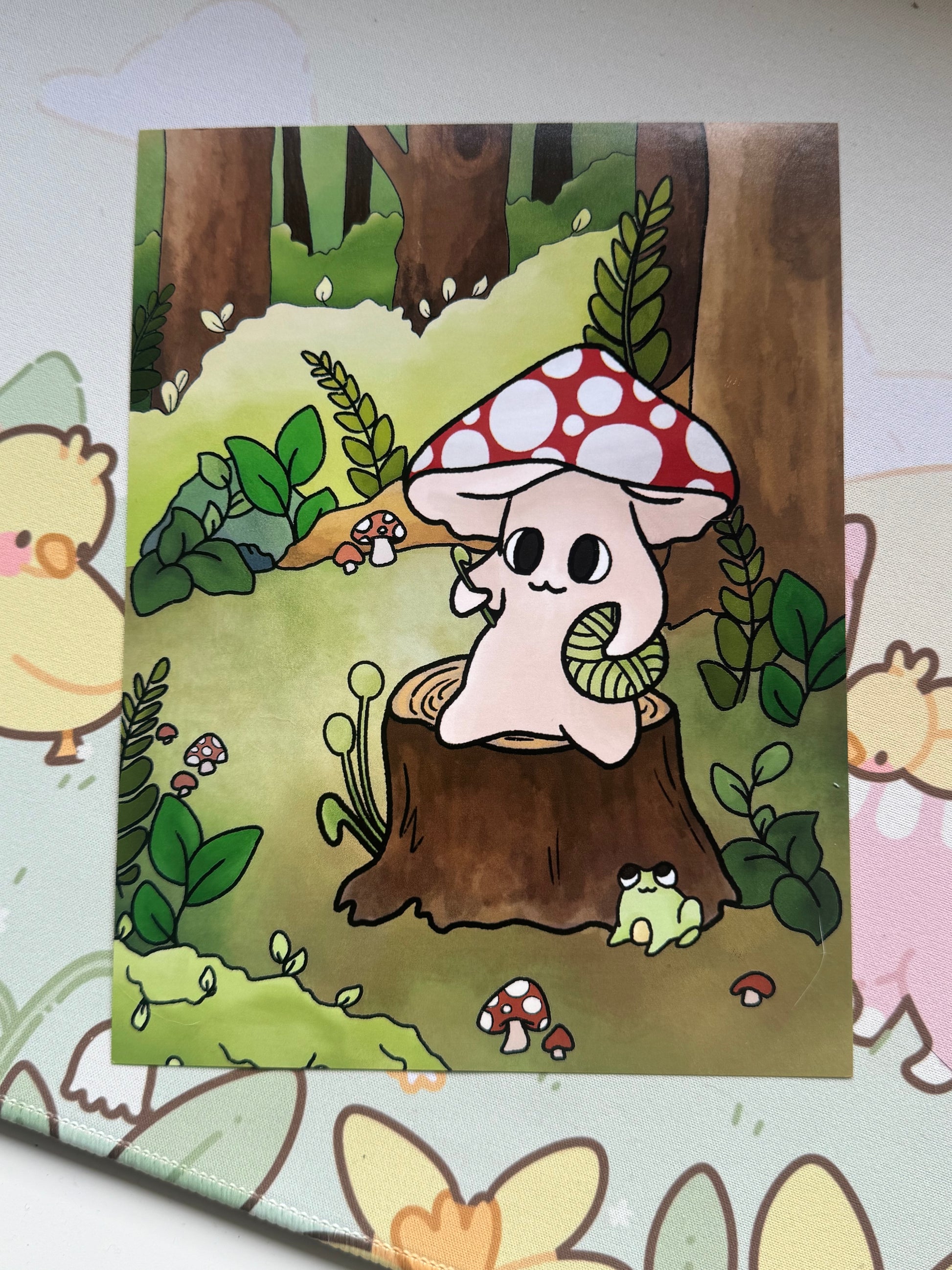 This art print features my mushroom crocheting on a log design, sat in a woodland area background! It measures 6x8 inches, the perfect size to showcase the art, but not so big it’s too large to go on a wall!