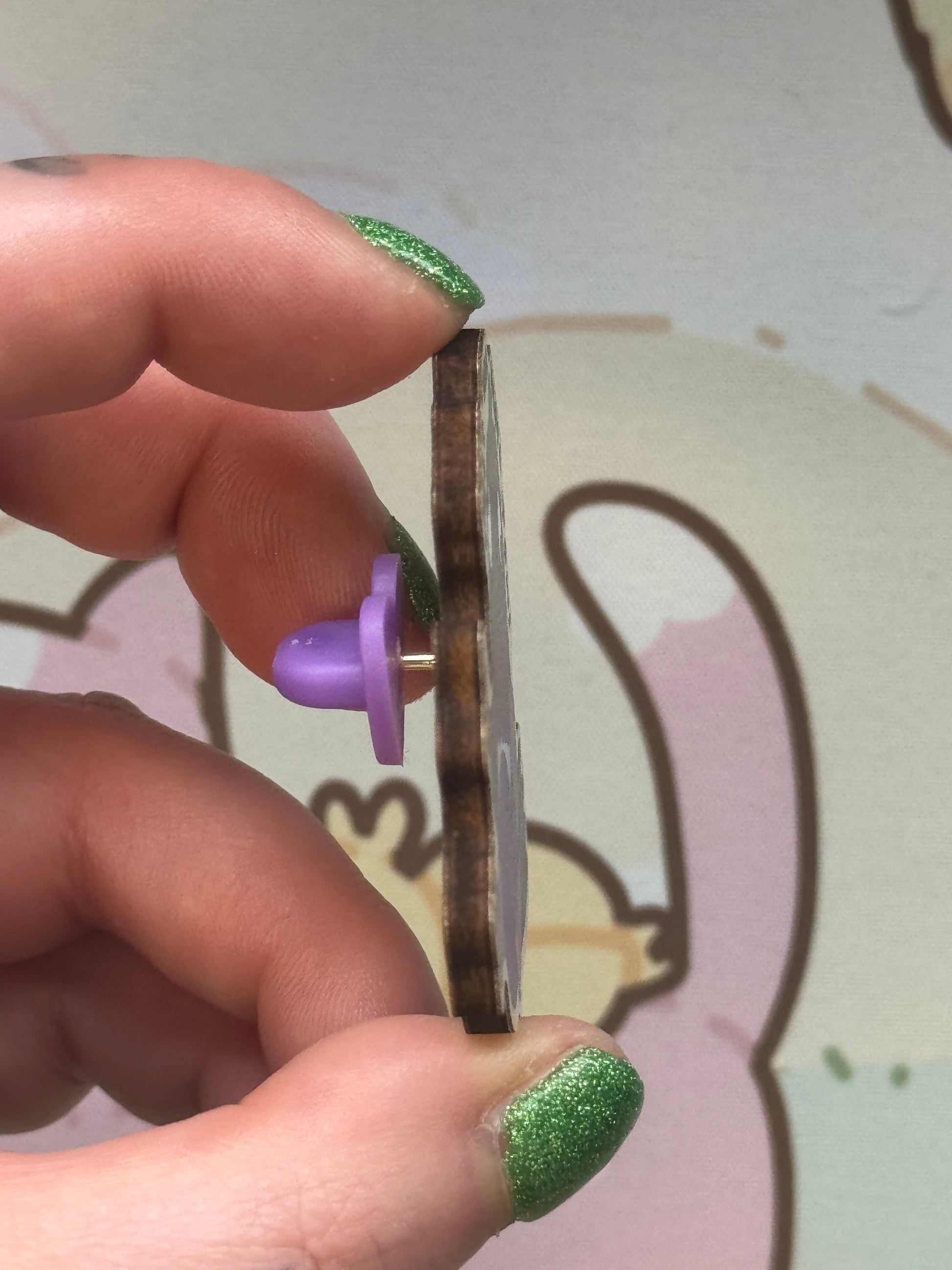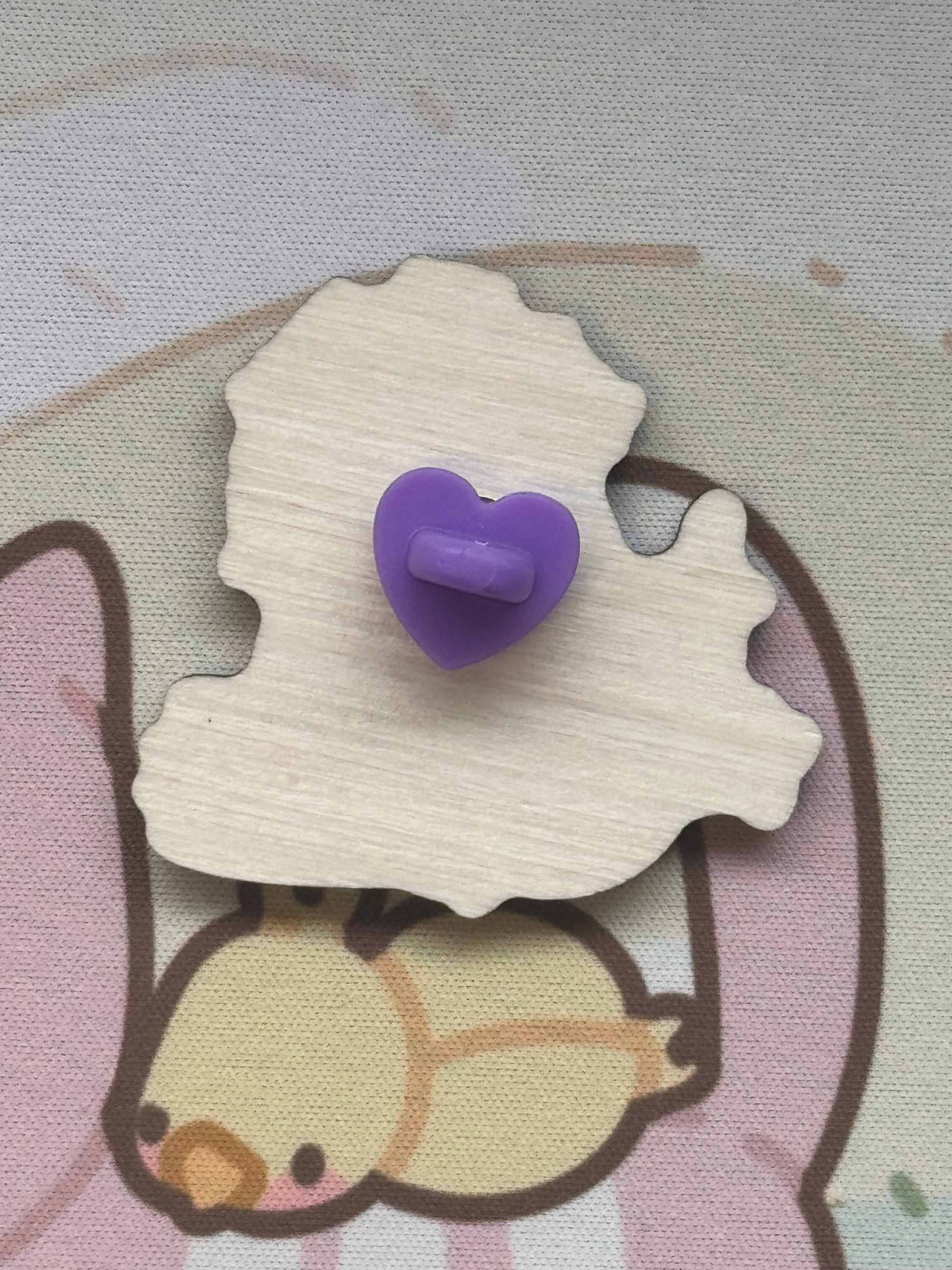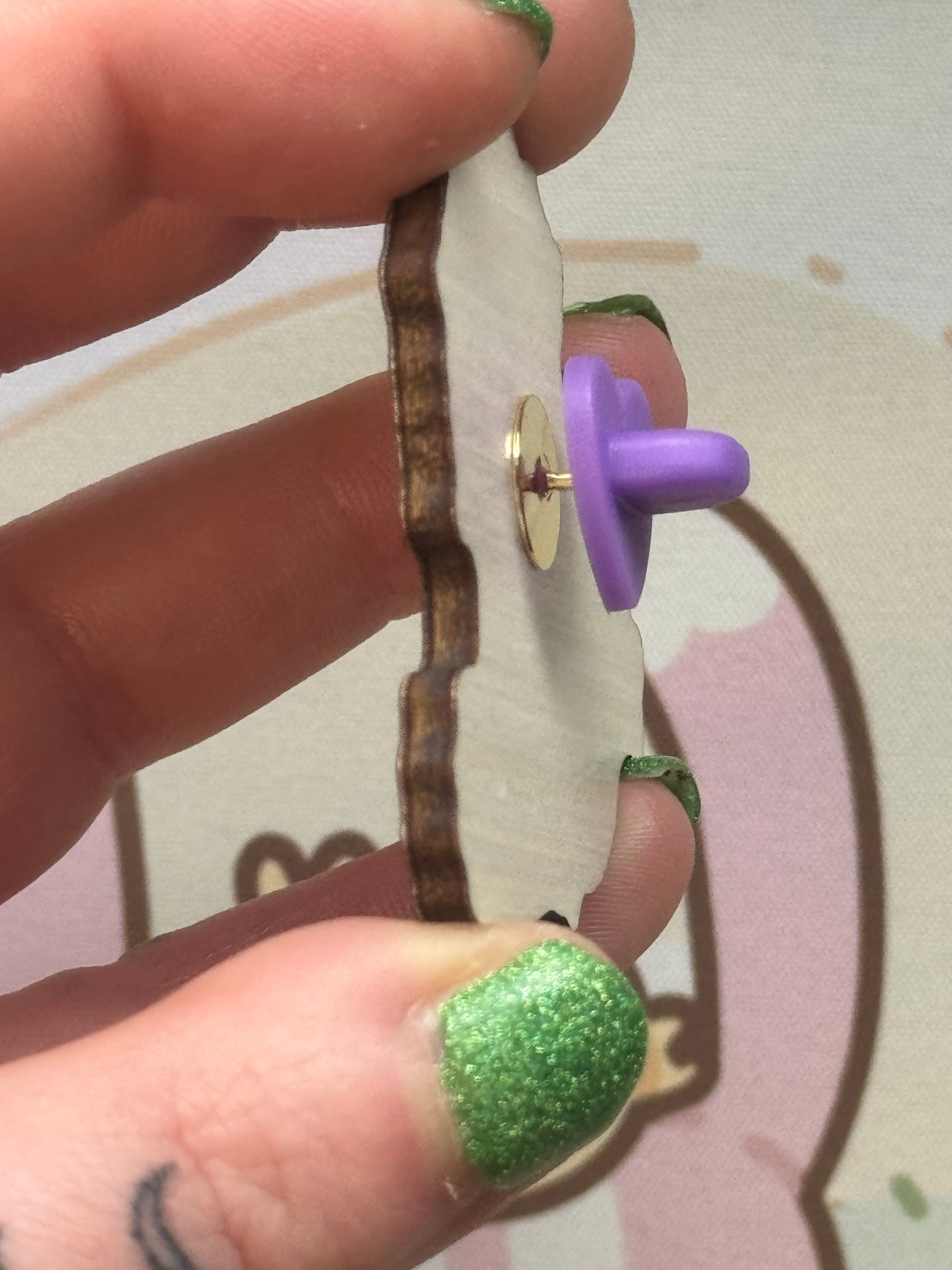 The design was drawn by me (Harper) on my iPad, then sent off to my manufacturer to be made into a synthetic wooden pin! When the pins arrive with me from manufacturing, each one is quality checked and packaged up onto backing cards that I also design!