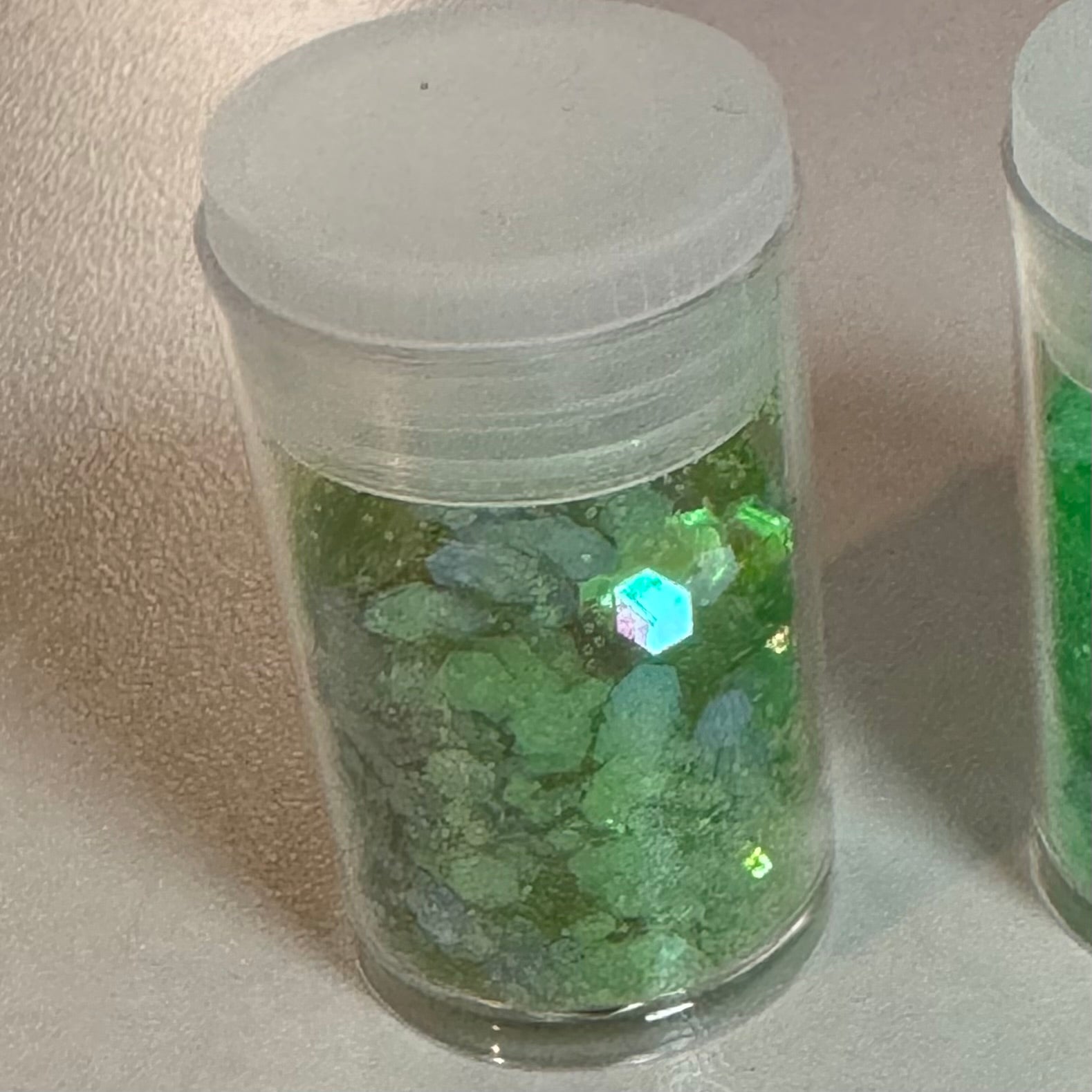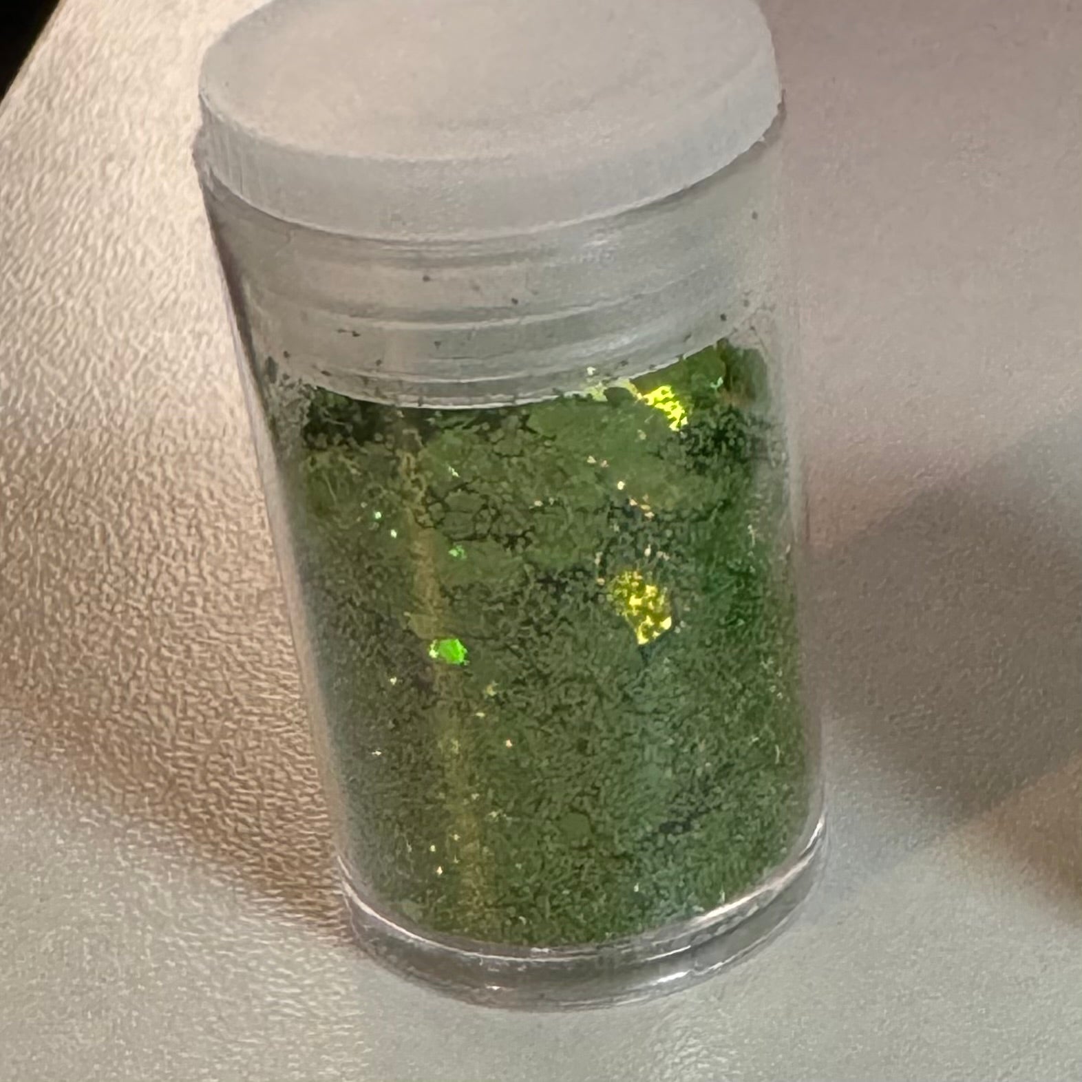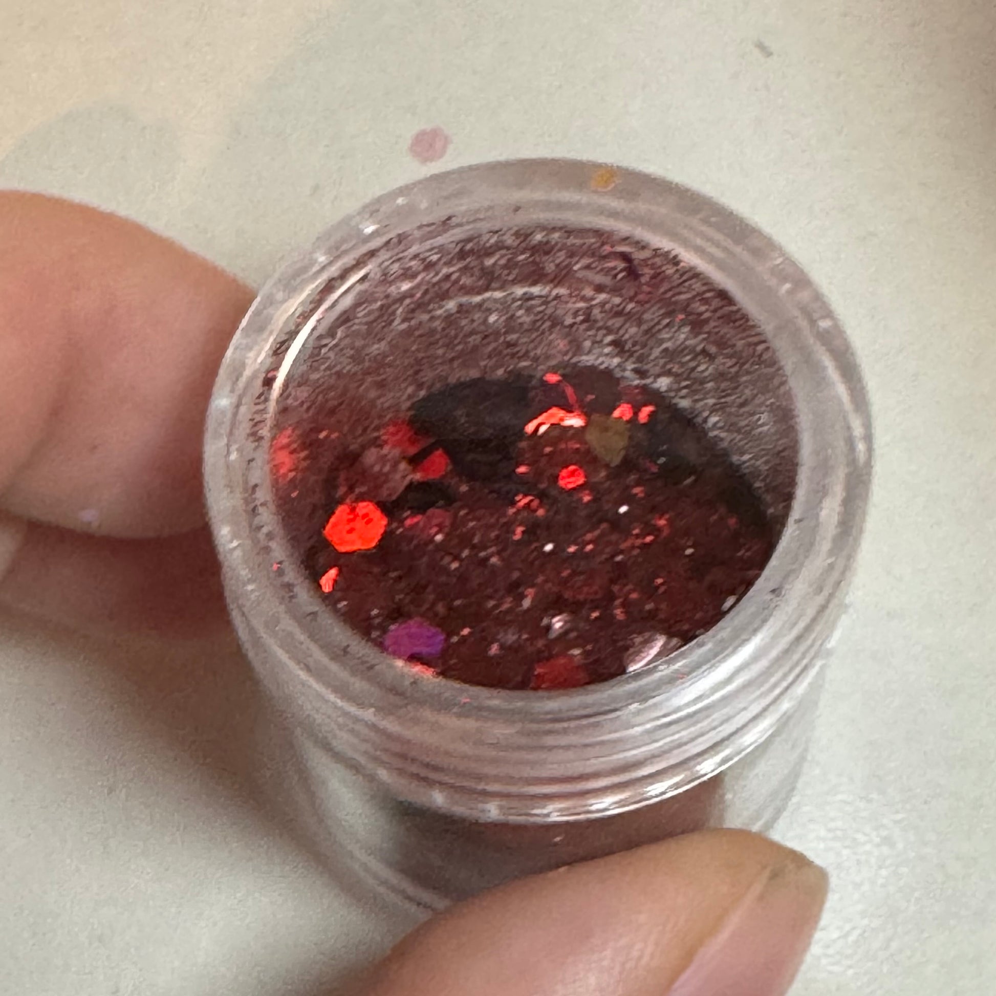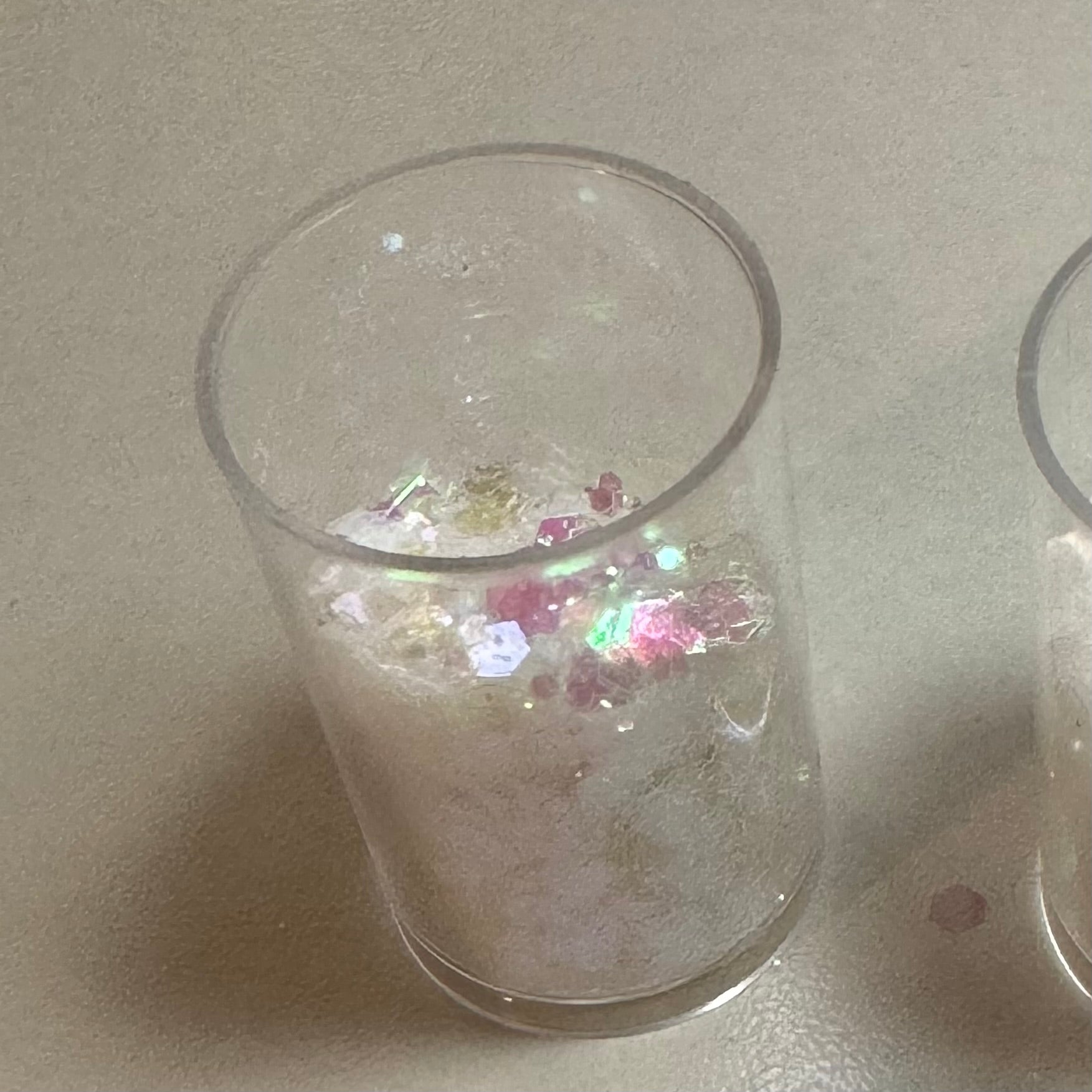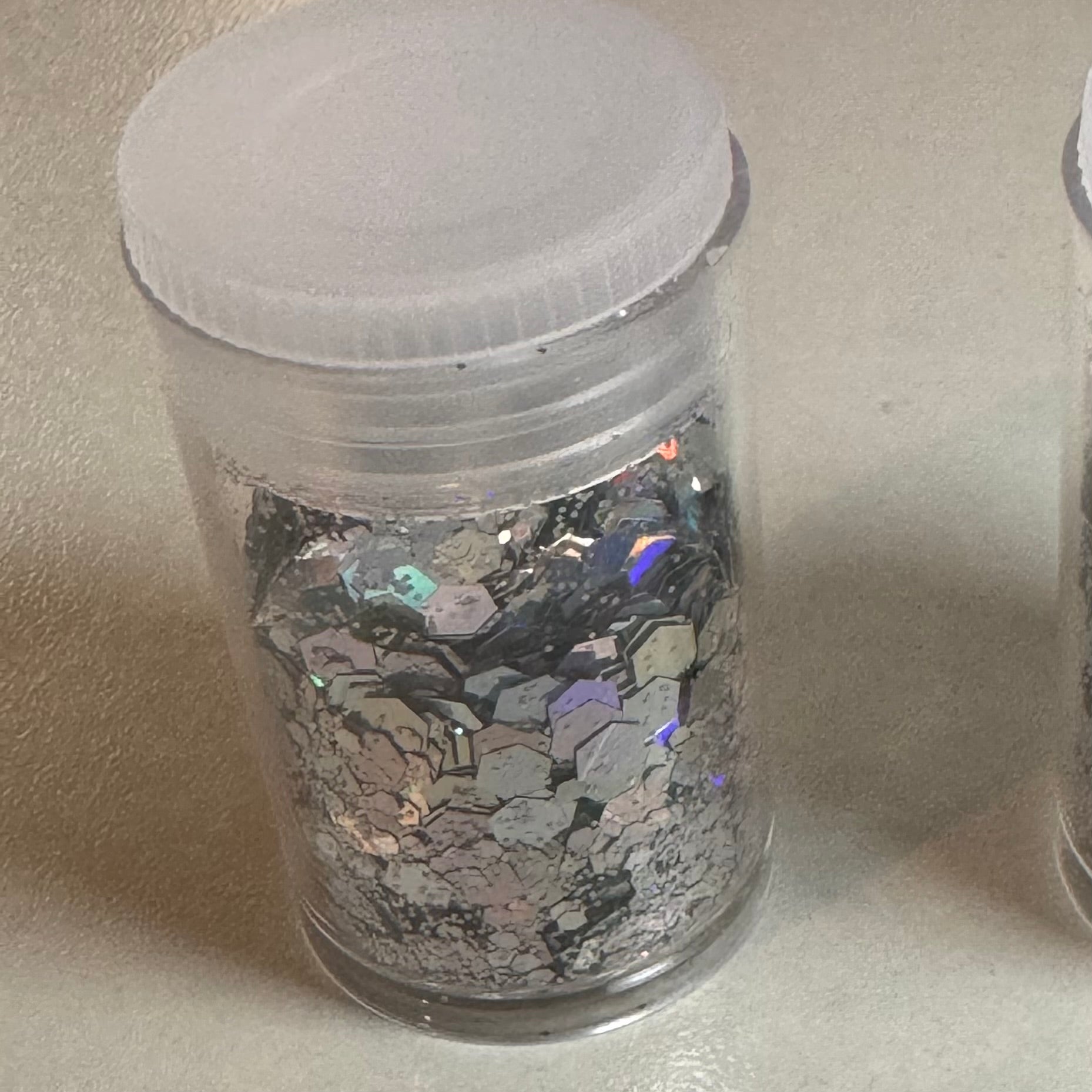 This is what the eyes look like before I paint glitter onto the backs to fill the clear part! I mix UV curing resin with your chosen glitter, paint it onto the eye, and cure under a UV lamp to solidify the glitter. I like to add a final layer of resin mixed with coloured pigment powder (I make sure the coloured powder matches the glitter colour!) onto the back of the glitter layer to seal it and leave a smooth surface on the back of the eye!