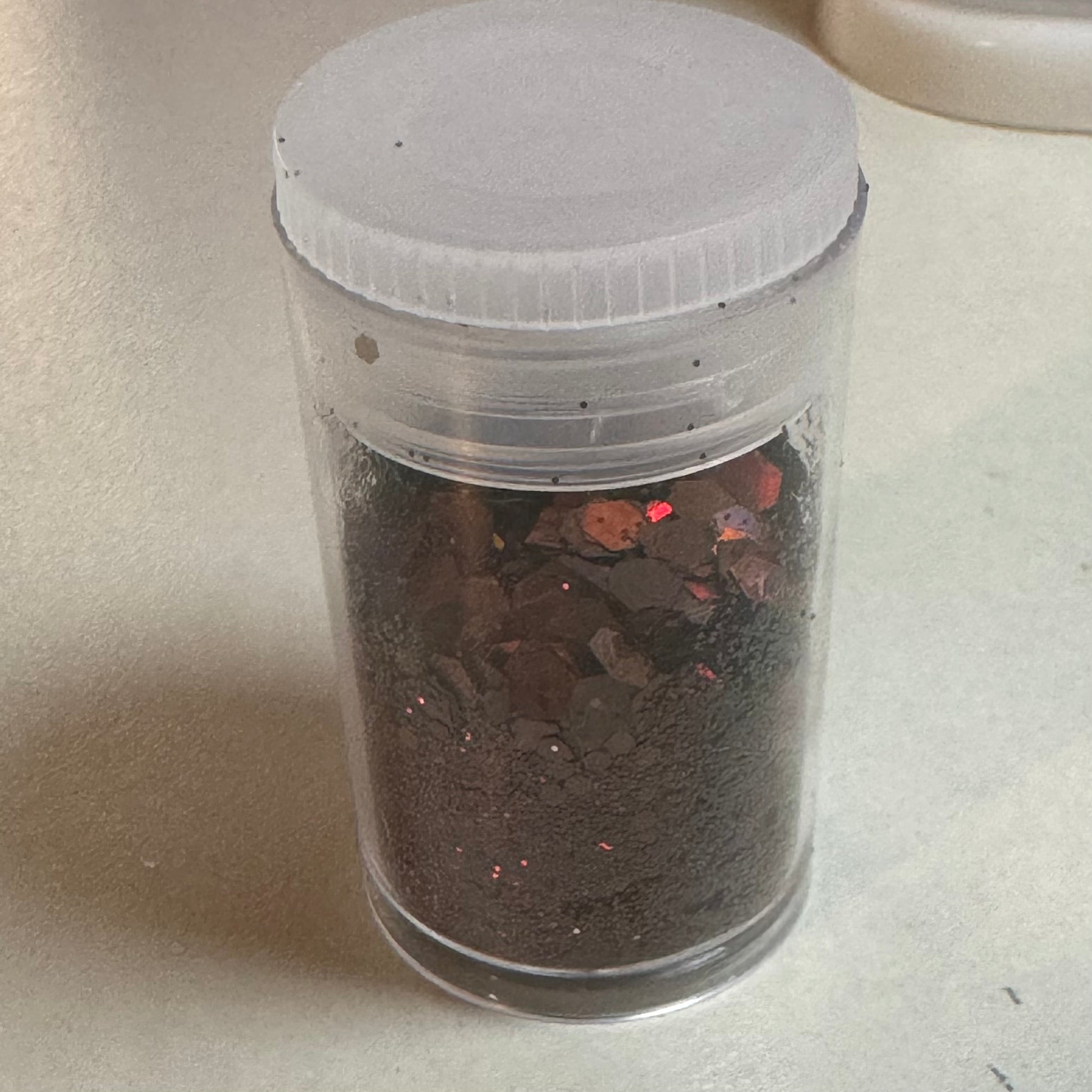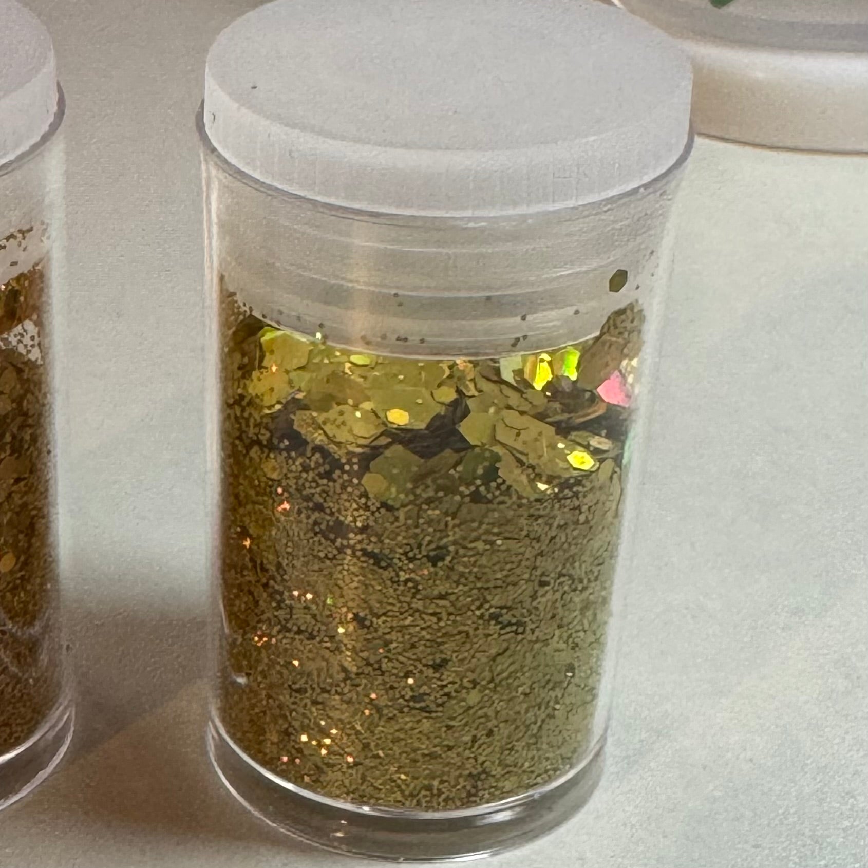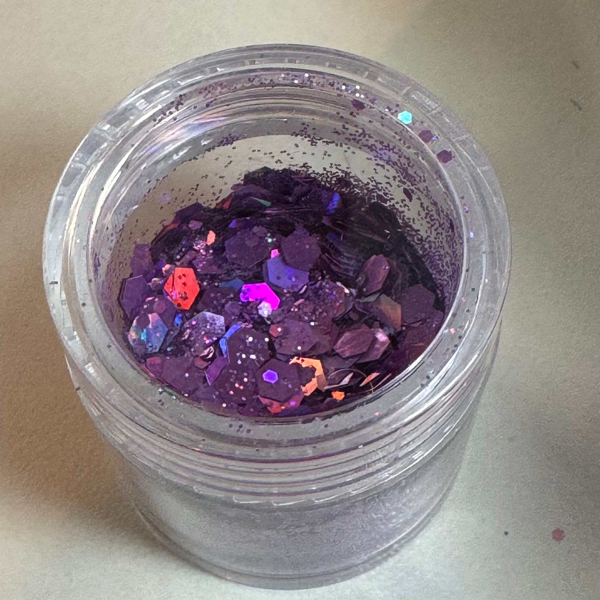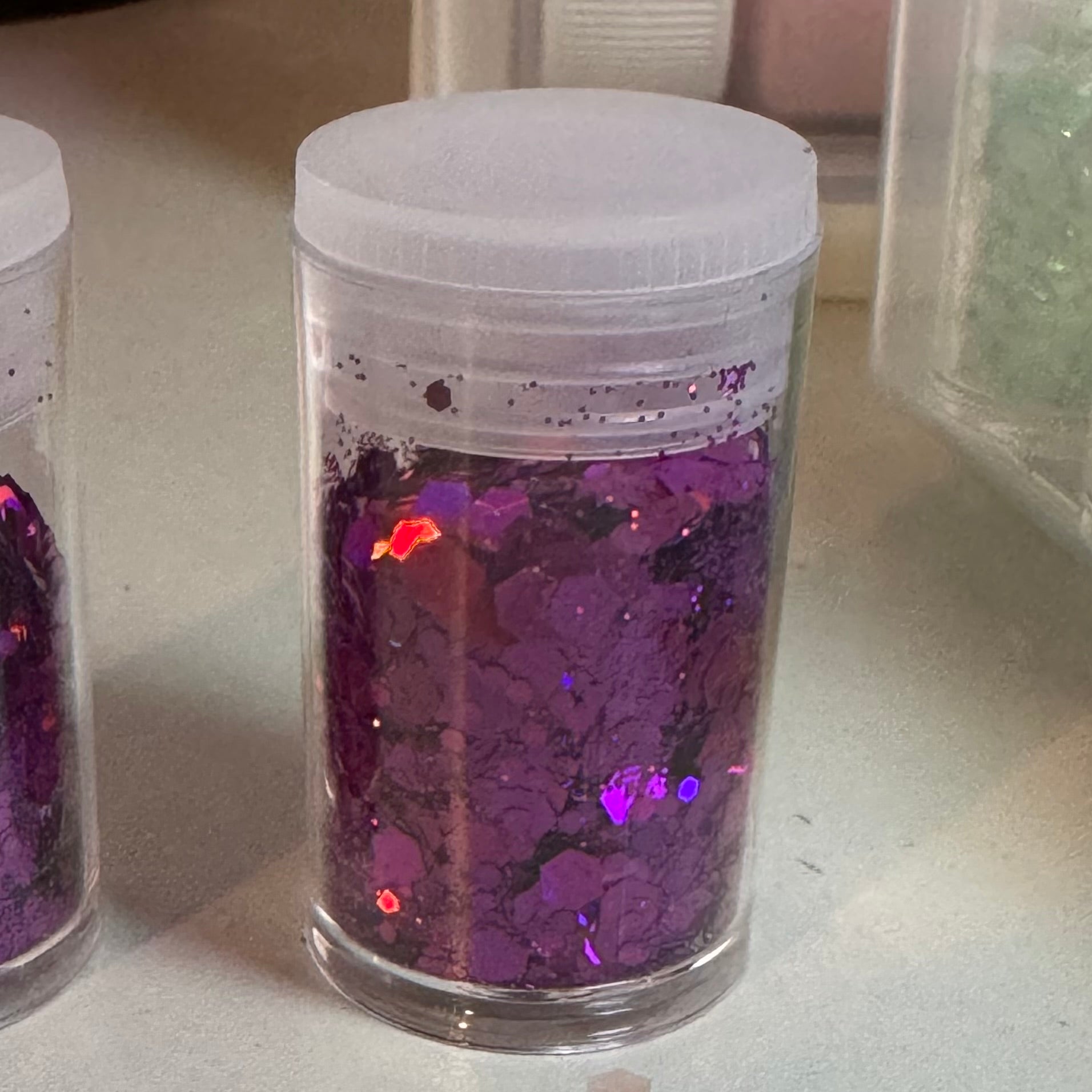 This is what the eyes look like before I paint glitter onto the backs to fill the clear part! I mix UV curing resin with your chosen glitter, paint it onto the eye, and cure under a UV lamp to solidify the glitter. I like to add a final layer of resin mixed with coloured pigment powder (I make sure the coloured powder matches the glitter colour!) onto the back of the glitter layer to seal it and leave a smooth surface on the back of the eye!