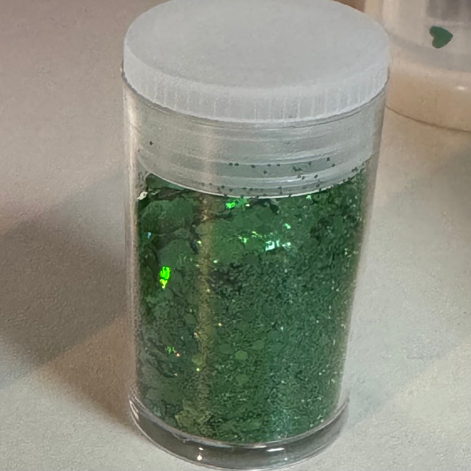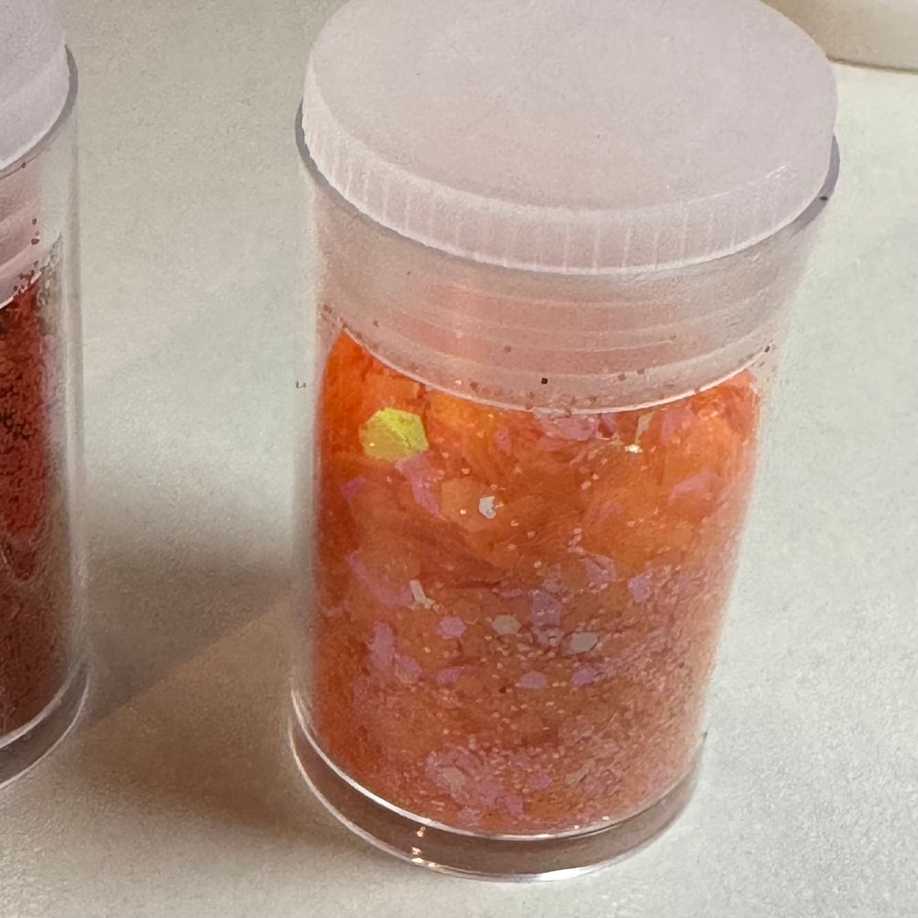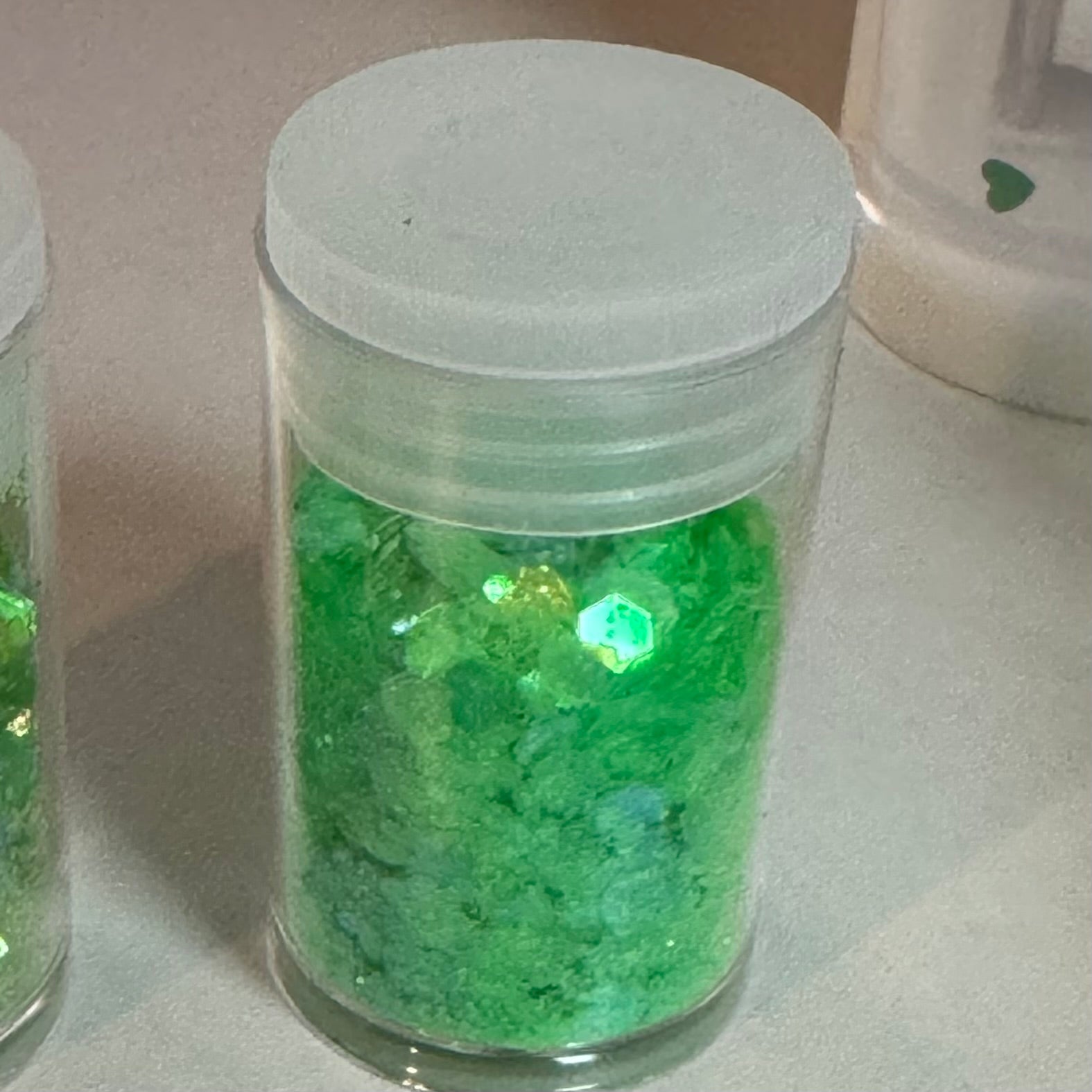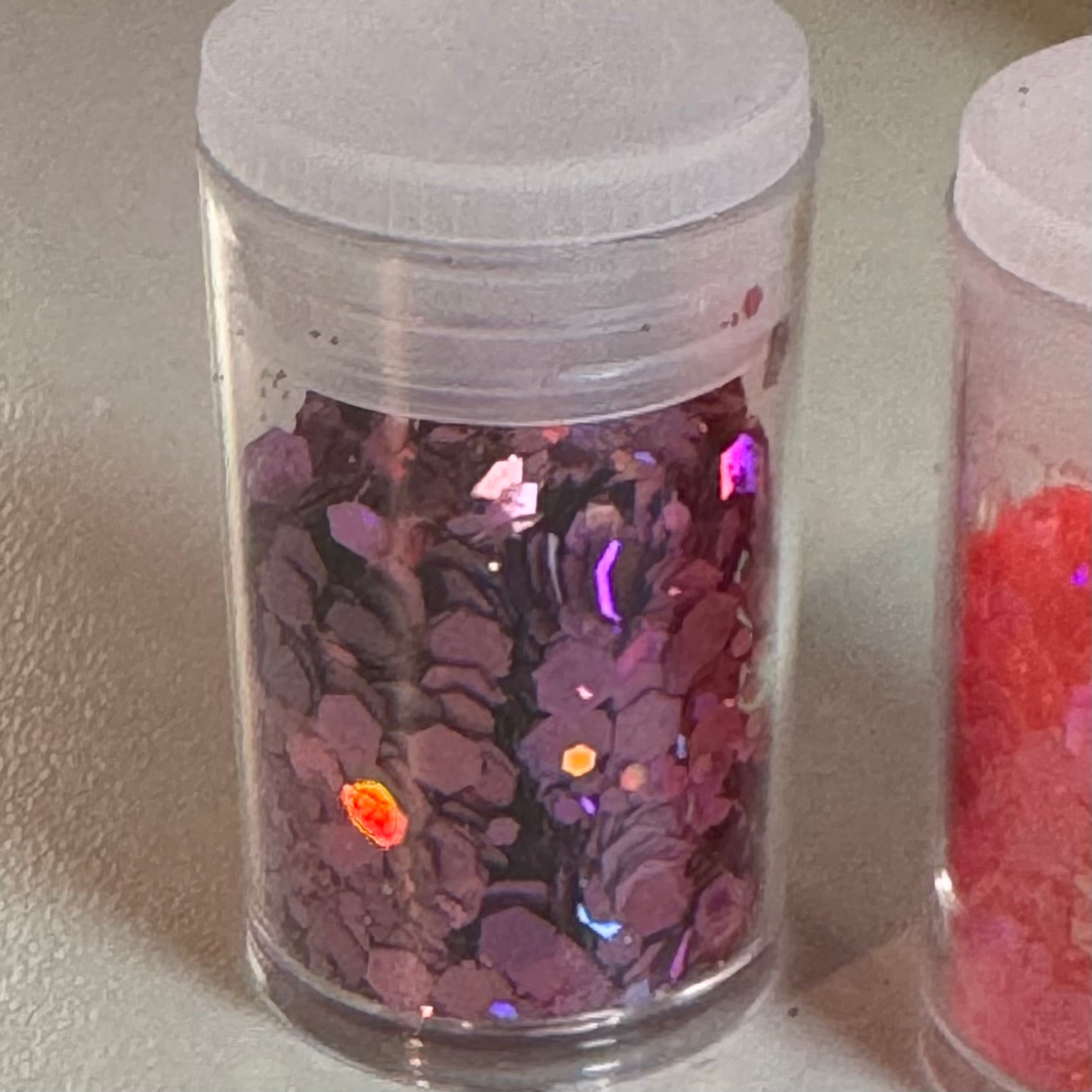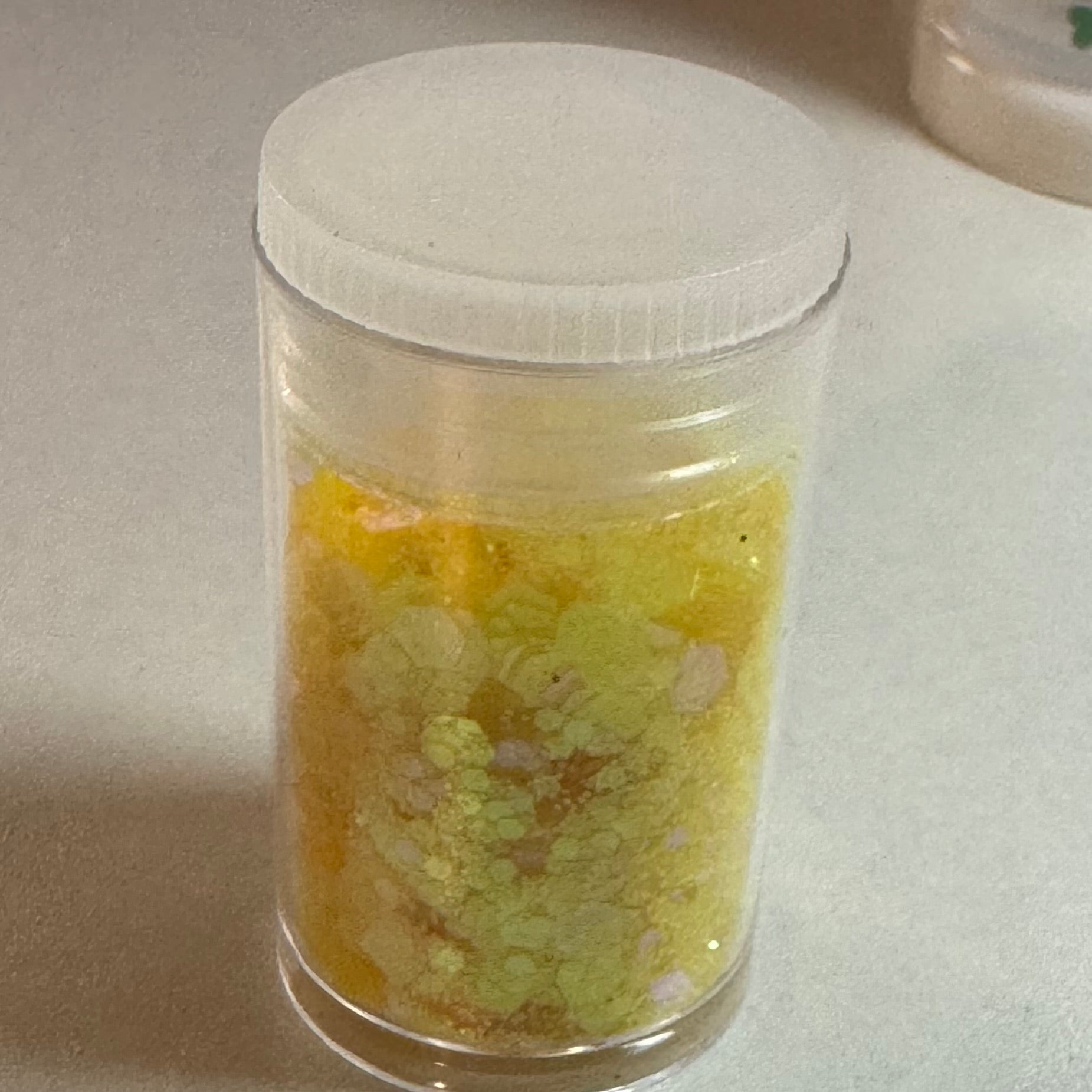 This is what the eyes look like before I paint glitter onto the backs to fill the clear part! I mix UV curing resin with your chosen glitter, paint it onto the eye, and cure under a UV lamp to solidify the glitter. I like to add a final layer of resin mixed with coloured pigment powder (I make sure the coloured powder matches the glitter colour!) onto the back of the glitter layer to seal it and leave a smooth surface on the back of the eye!