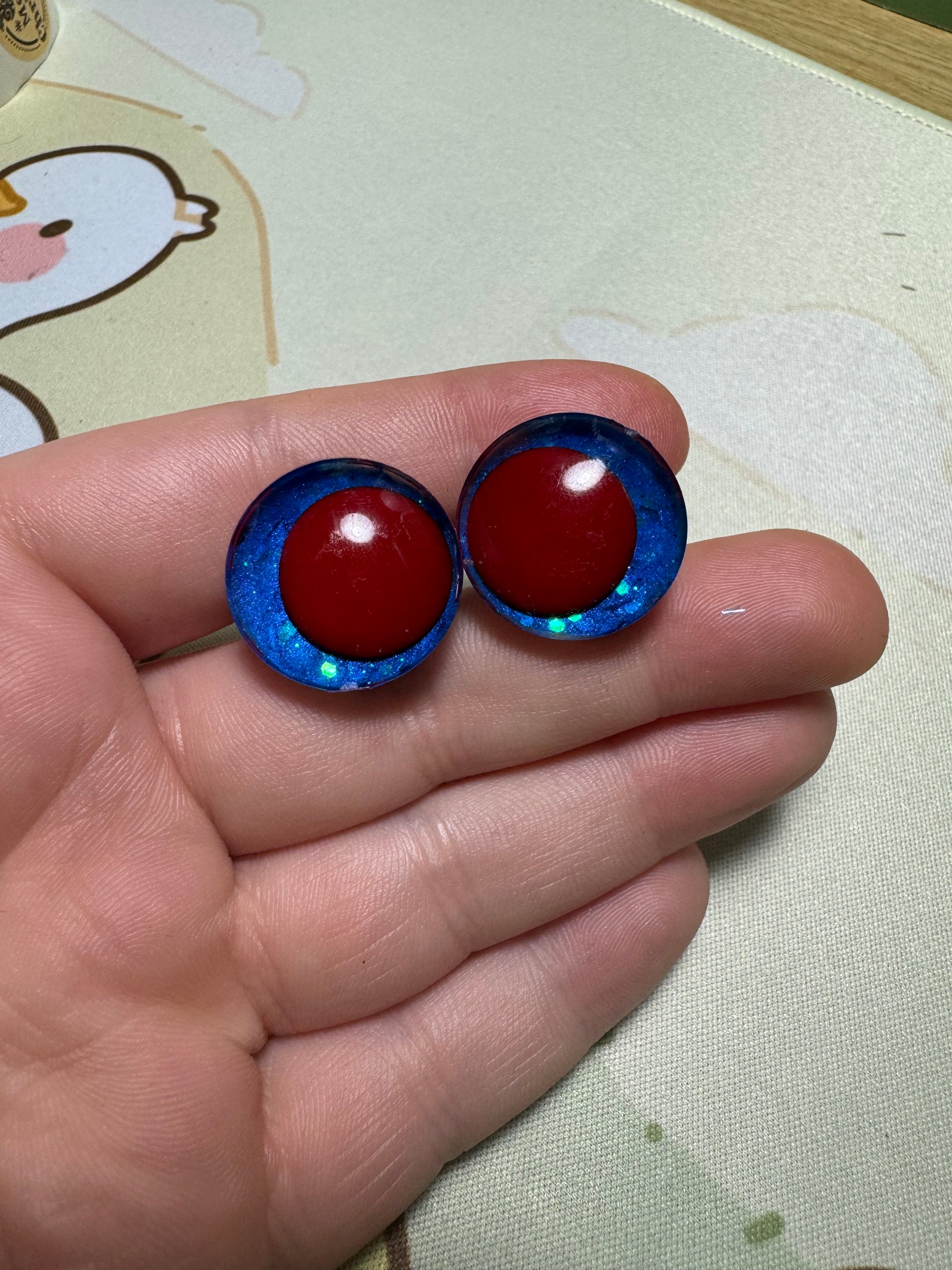 Red "kawaii" off centre pupils on a pair of 20, 25, 30, or 35mm safety eyes.