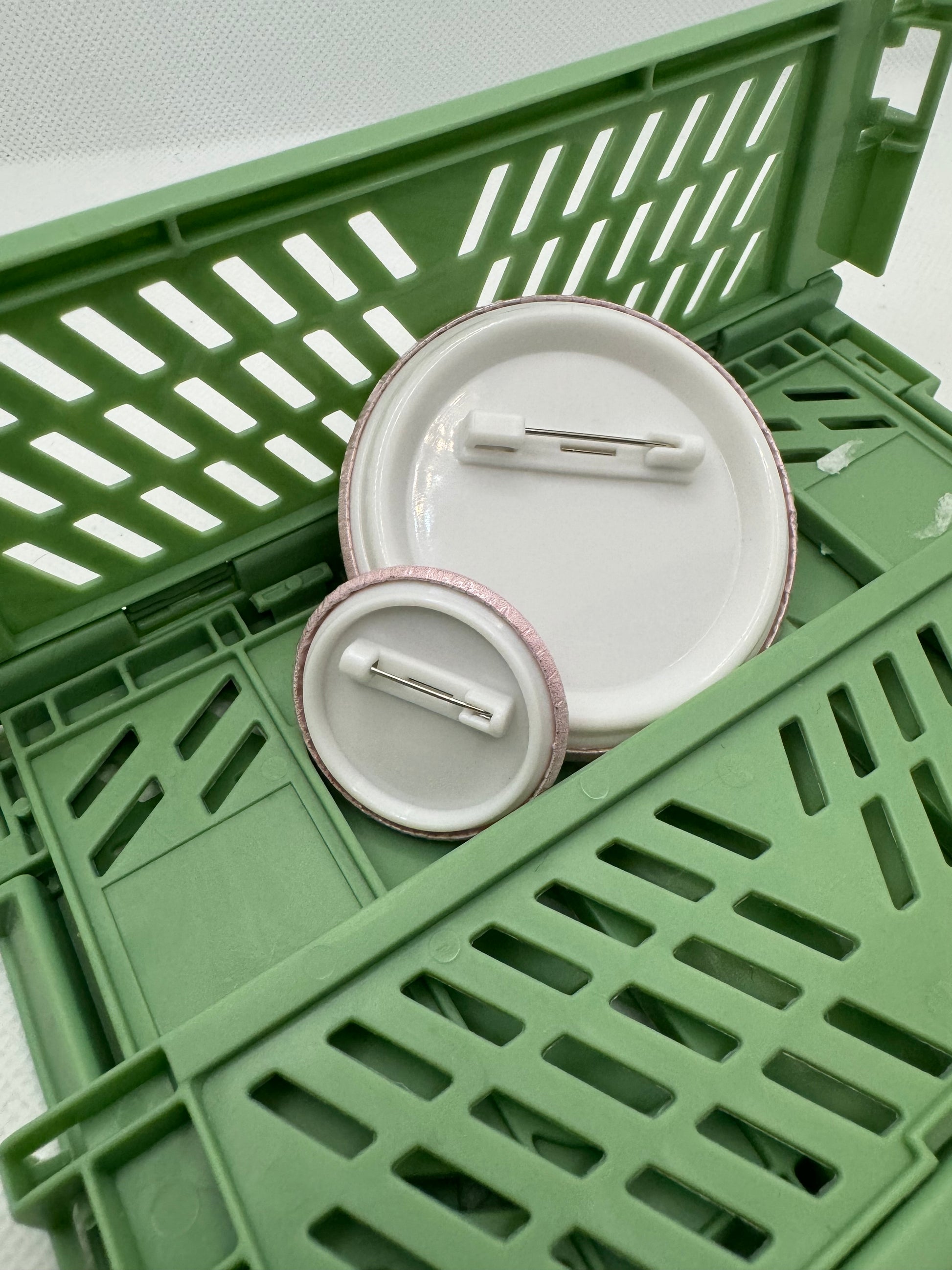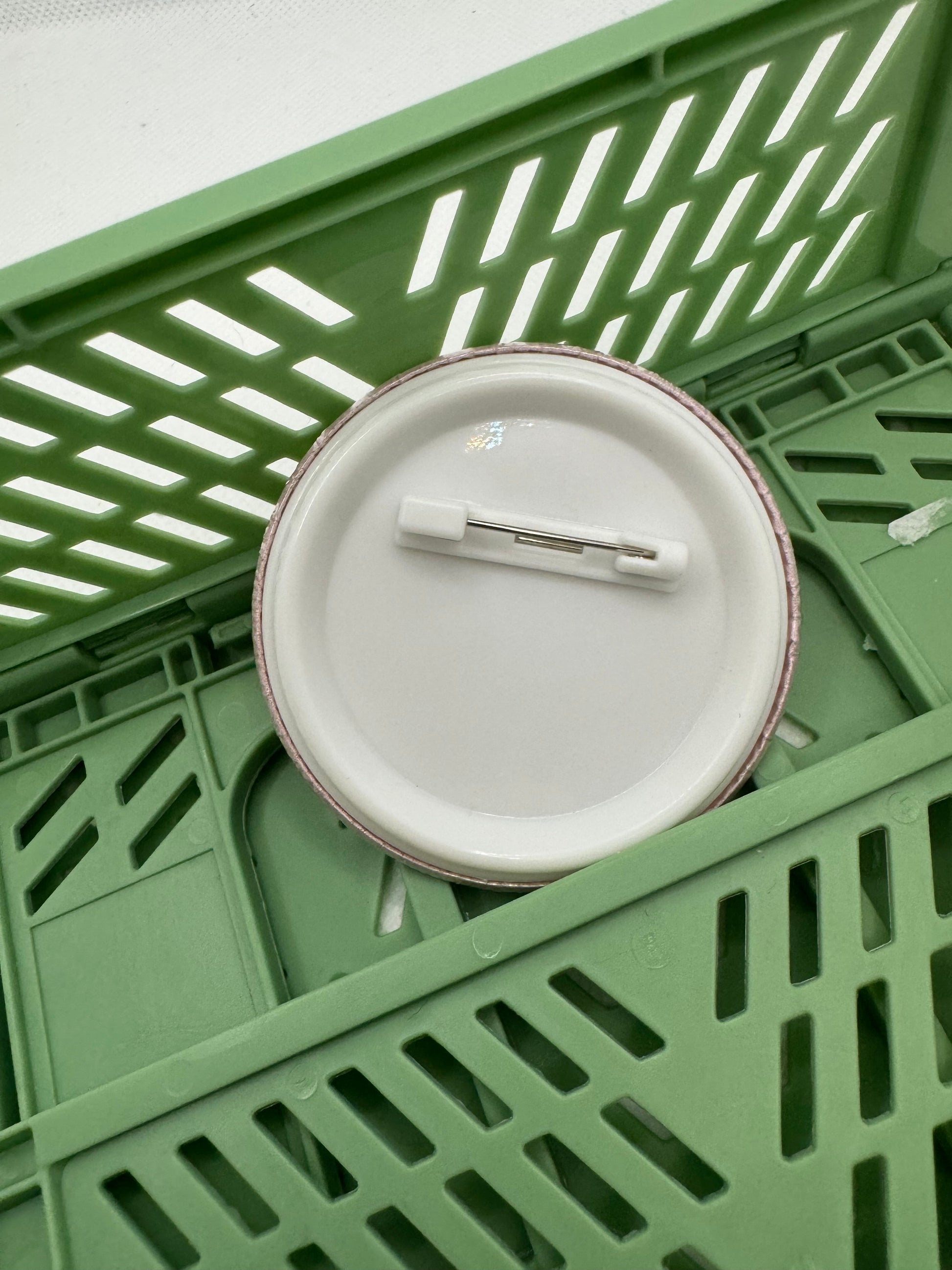 It is made from a metal front piece and plastic badge back with a metal pin for securing to your bag or shirt etc! The design is printed at home by me, Harper, and pressed onto the badge with my badge machine! The artwork is original to Harper Crochets, and is drawn on my iPad!